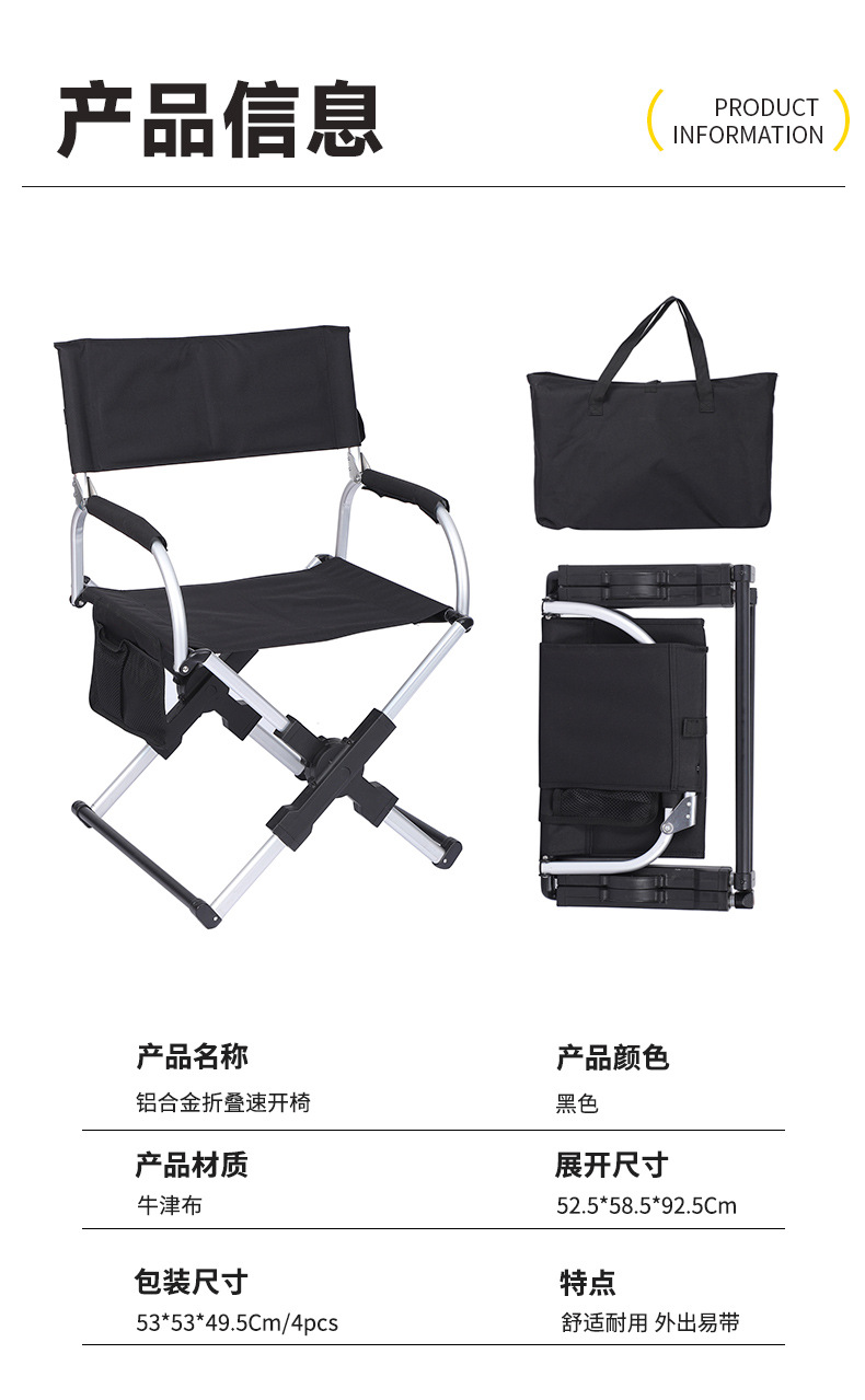 소스 도매 야외 캠핑 접이식 의자 알루미늄 합금 의자 등받이 감독 의자 장비 레저 낚시 가볍고 컴팩트