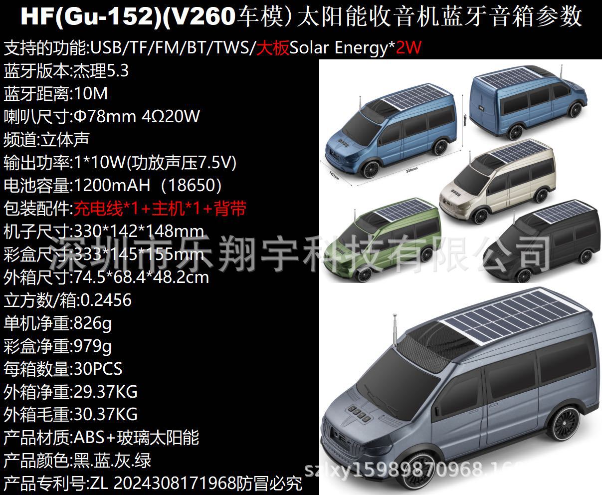 Gu-152 새로운 아프리카 및 남미 핫 판매 자동차 모델 휴대용 오디오 태양 전지 패널 충전 무선 블루투스 스피커스토어 가기
