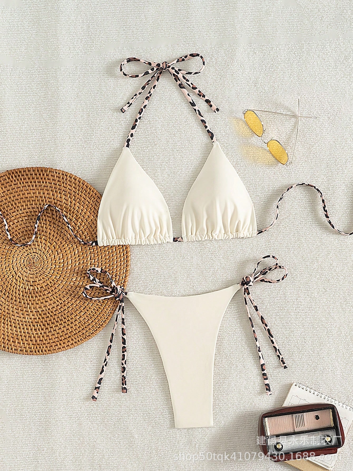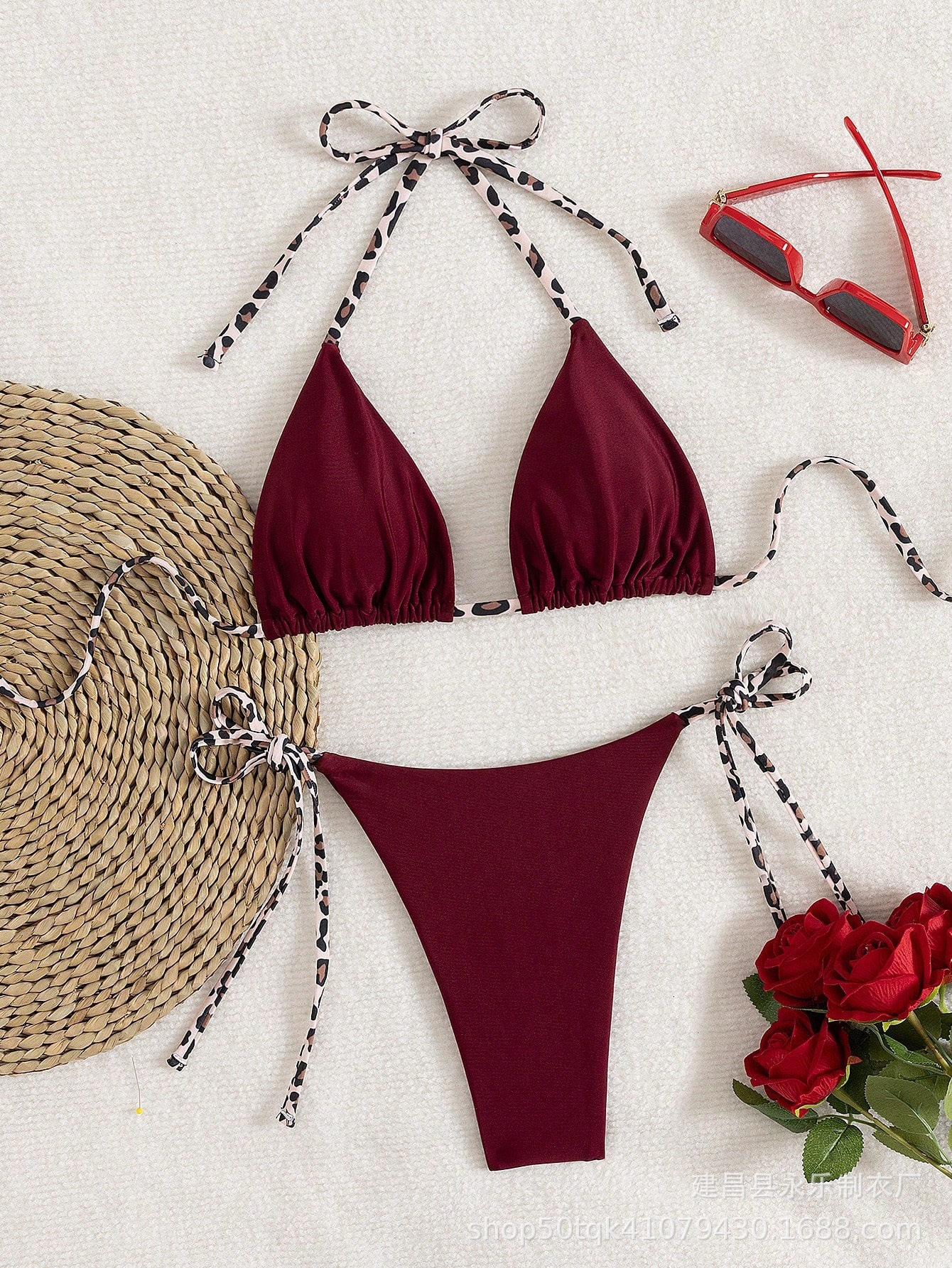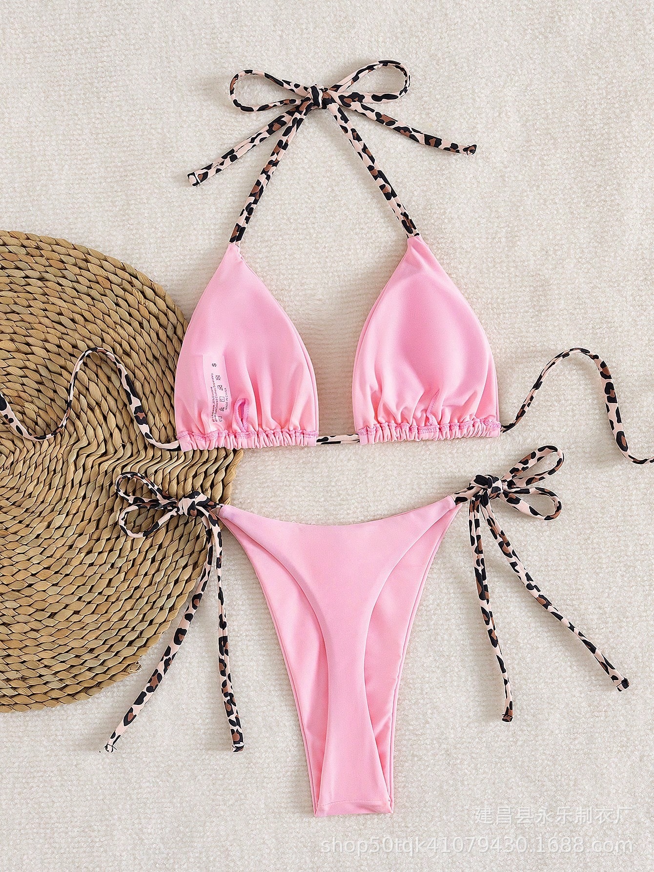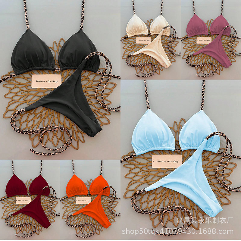 2025 새로운 크로스보더 솔리드 컬러 심플 유럽과 미국 여성 스플릿 수영복 트라이앵글 백 레이스 업 섹시한 비키니스토어 가기