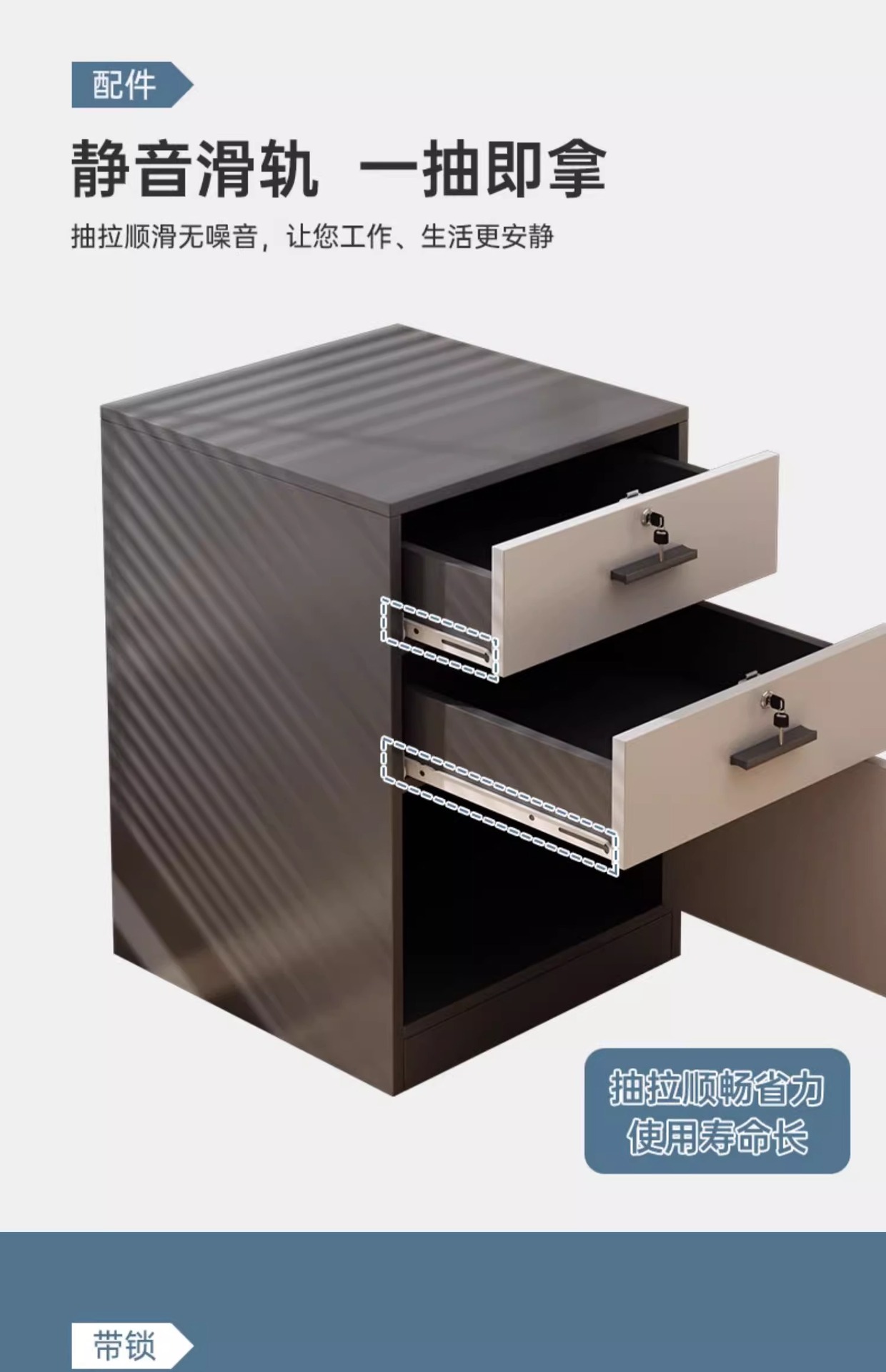 • 메인 사진 특가*[서랍 2개, 슬라이드 레일이 있는 문 1개] 블랙 그레이 65 높이