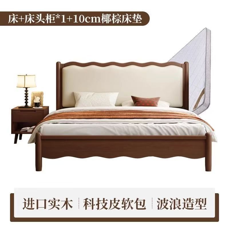 • 부드러운 등받이 원목 싱글 침대 [기본 호두 색상]