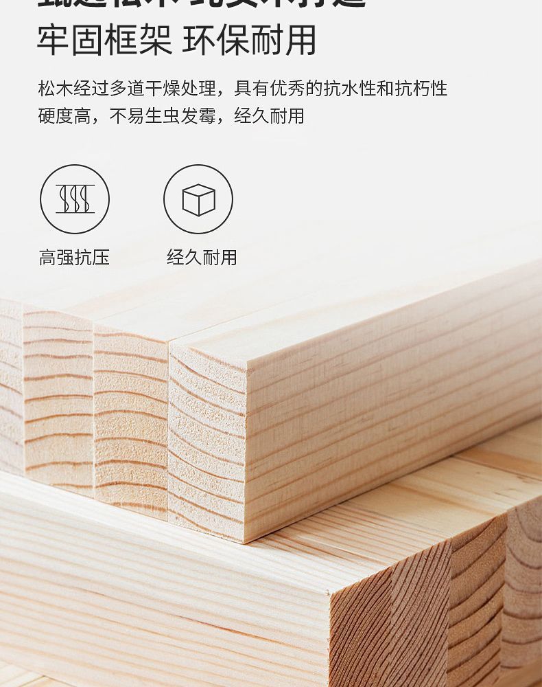 • 길이 196cm, 폭 60cm, 높이 40cm 원목 침대 + 코코넛 야자 매트리스