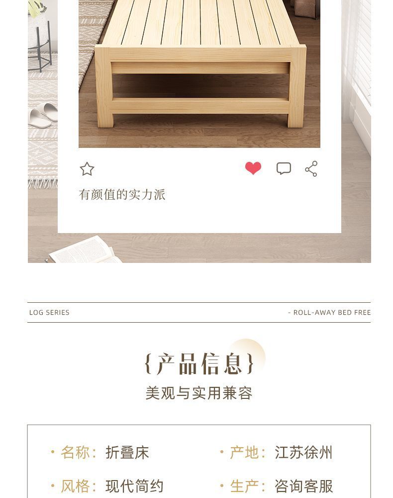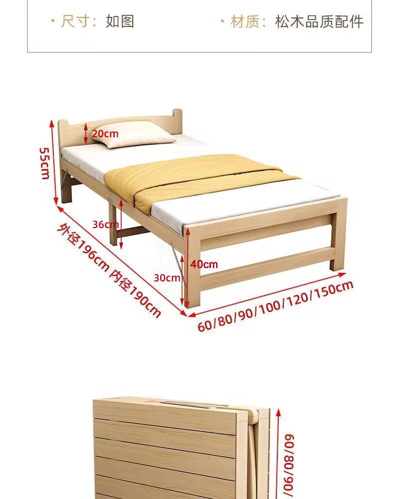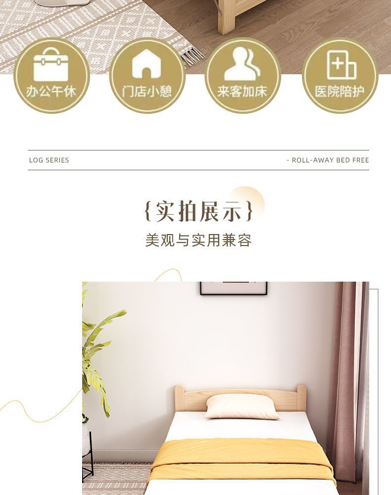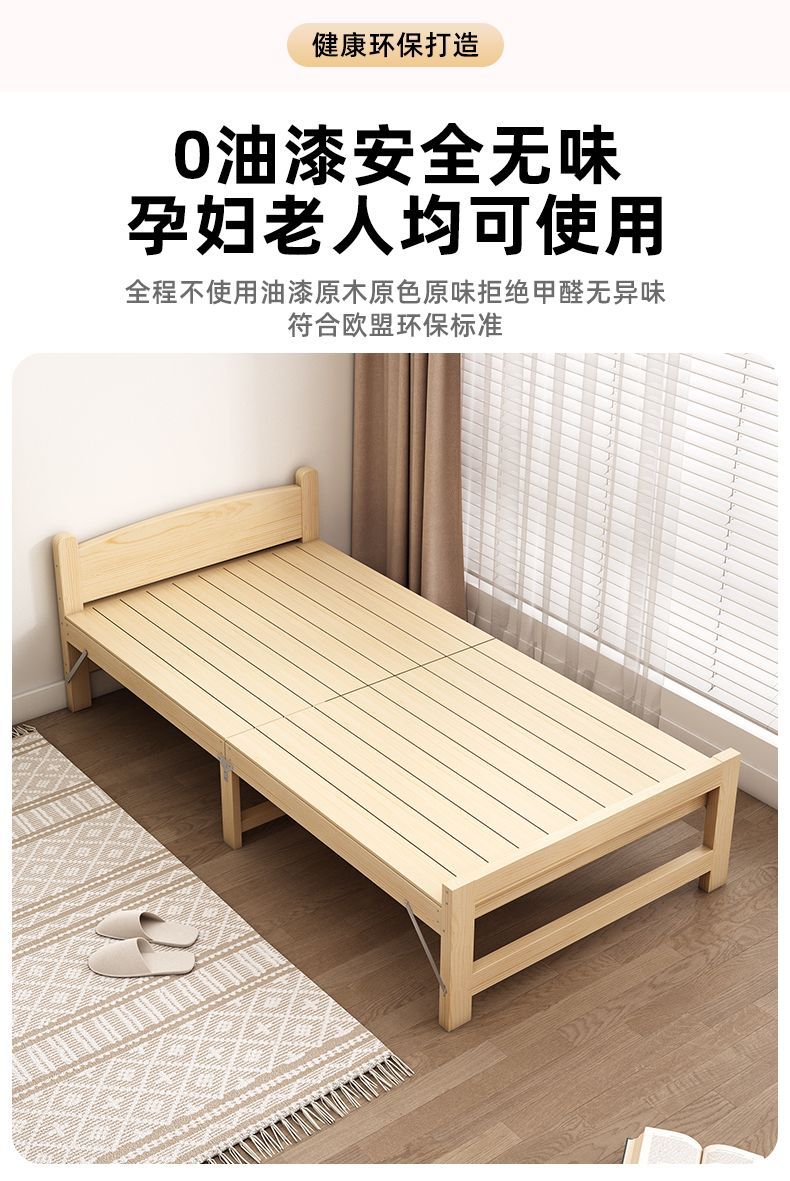 단단한 나무 접이식 침대 가정용 간단한 점심 시간 더블 싱글 침대 사무실 수면 침대 임대실 경제적인 침대 프레임스토어 가기
