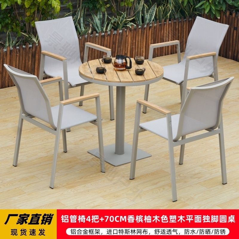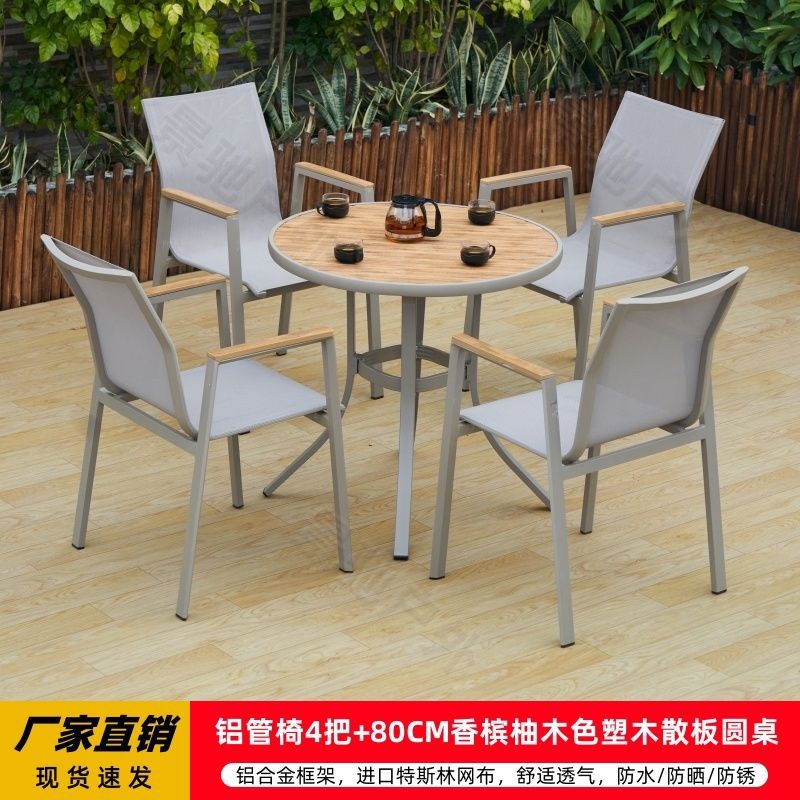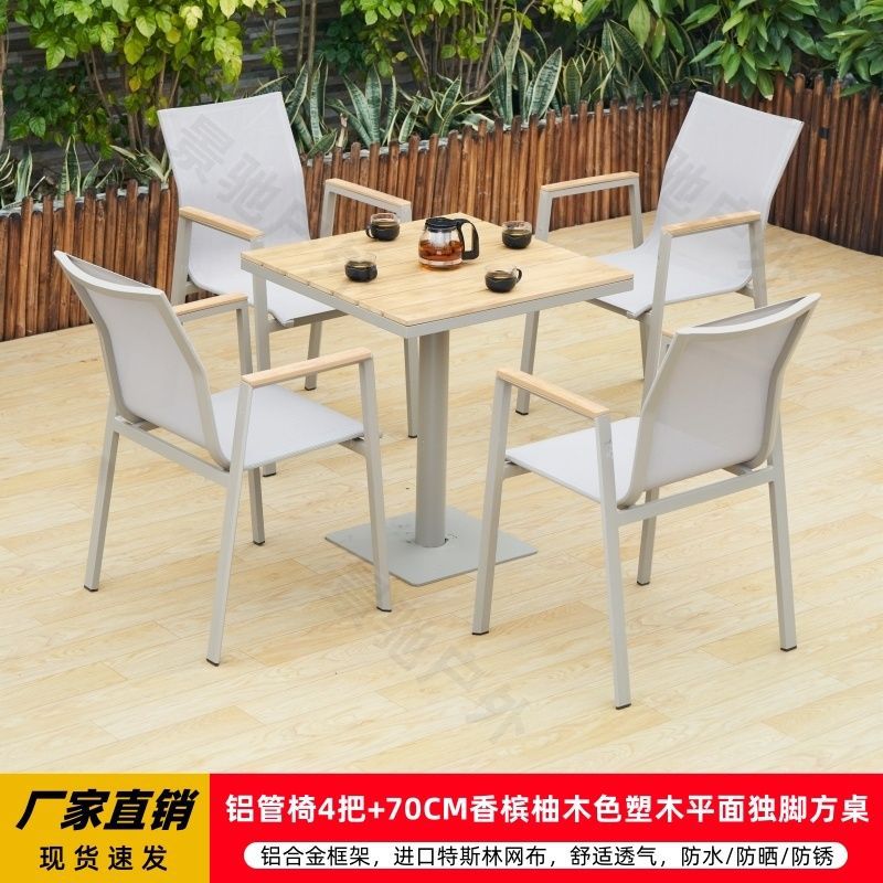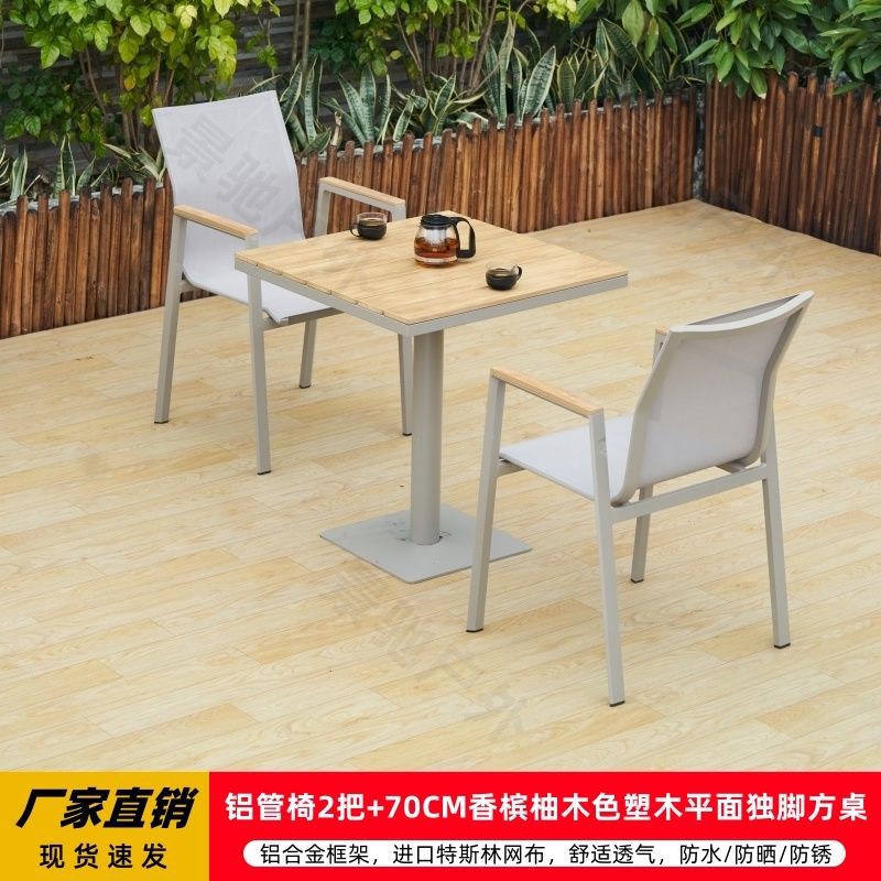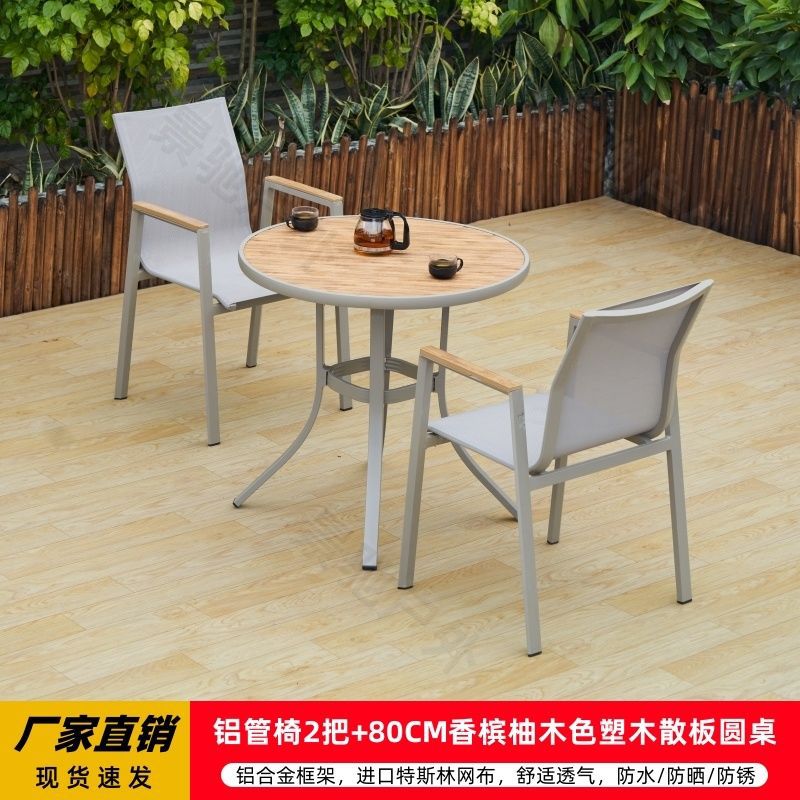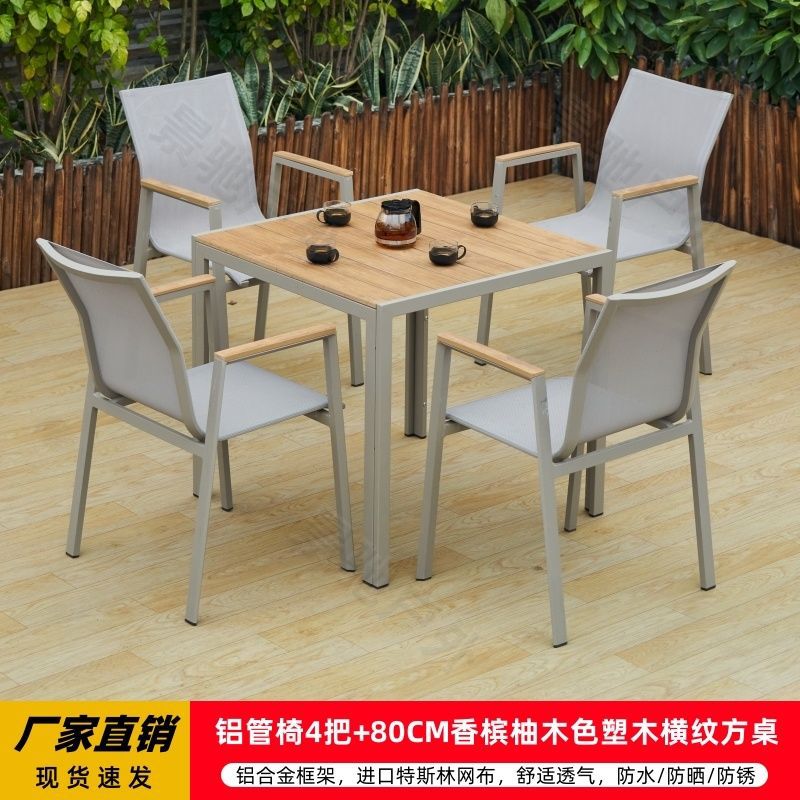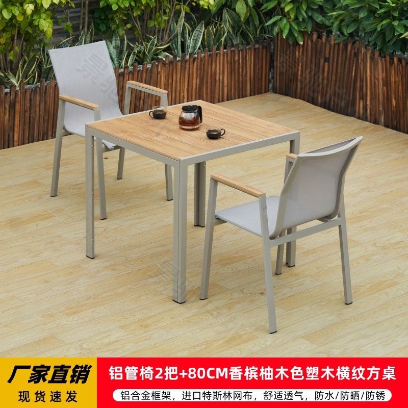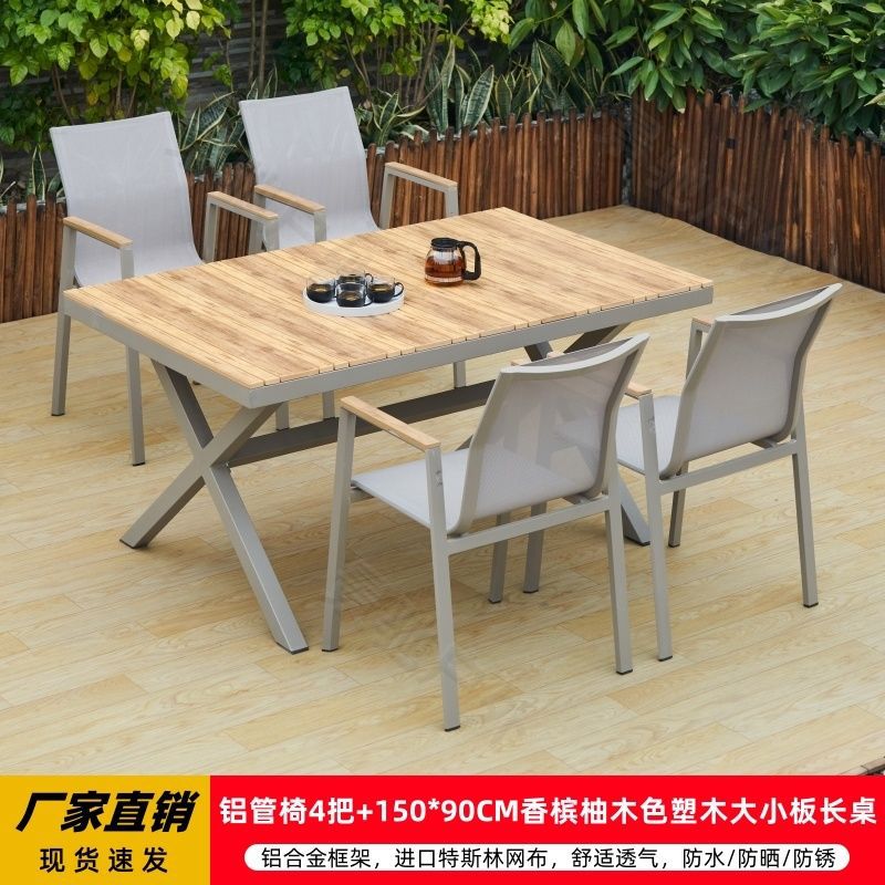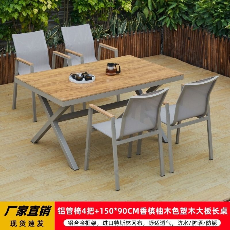 야외 안뜰 테이블과 의자 알루미늄 합금 야외 레저 플라스틱 목재 식탁 테라스 빌라 정원 부식 방지 목재 테이블과 의자 조합스토어 가기