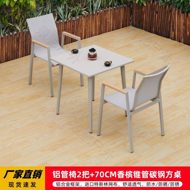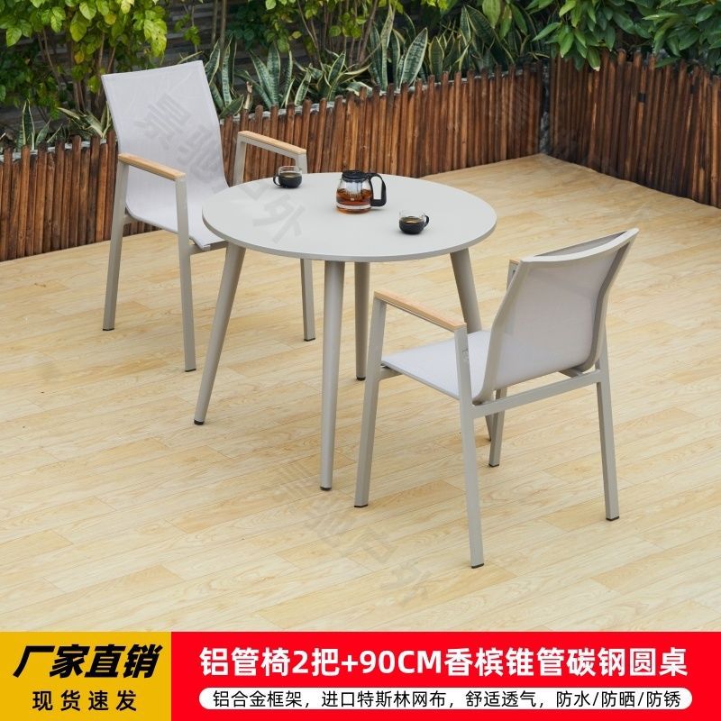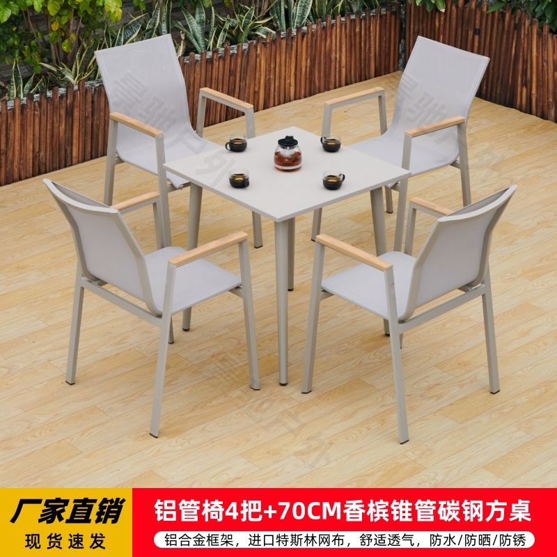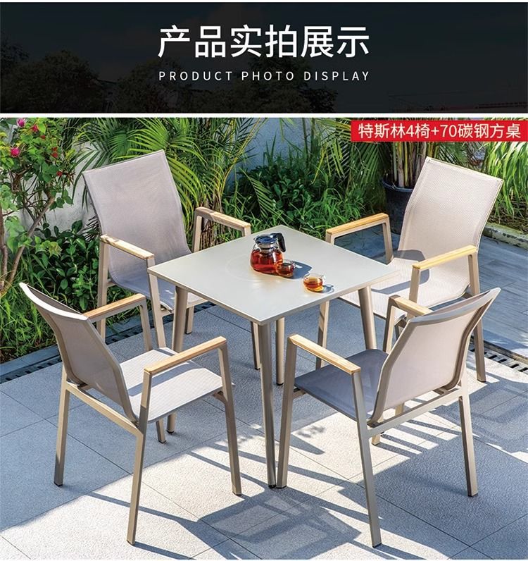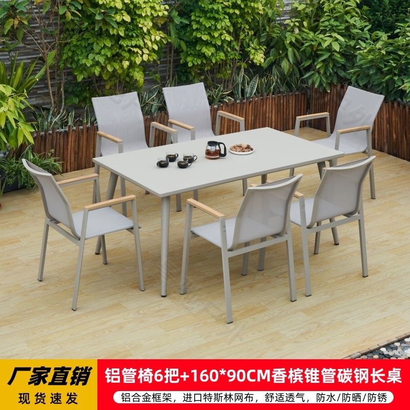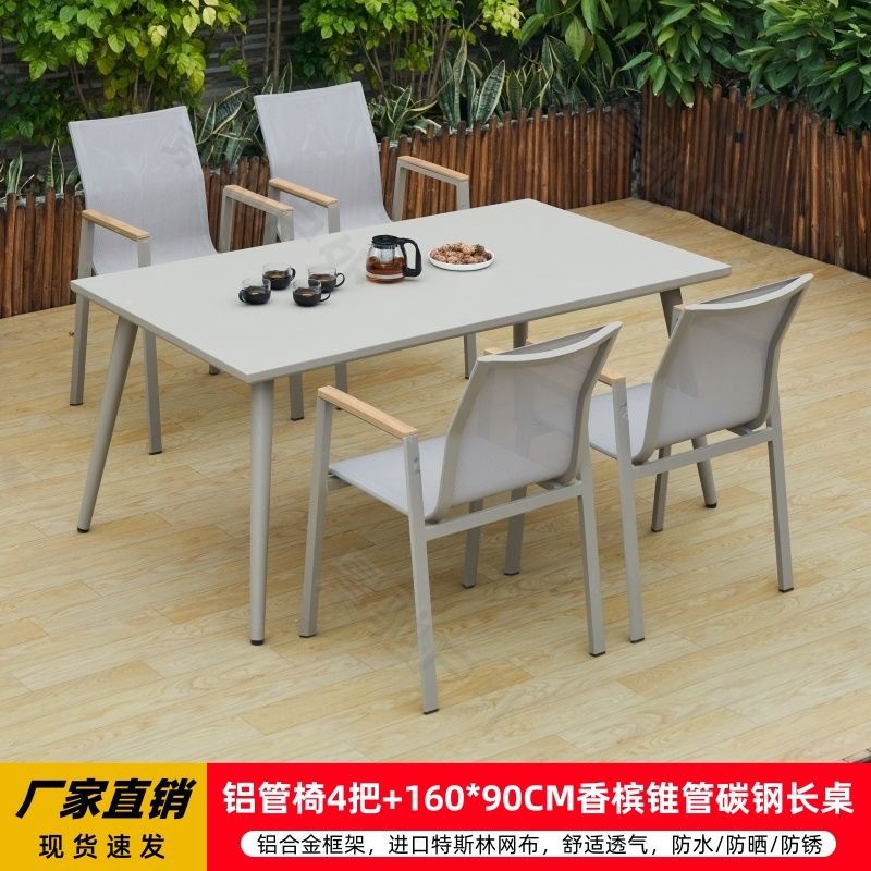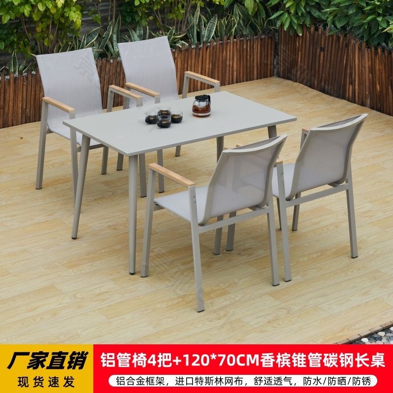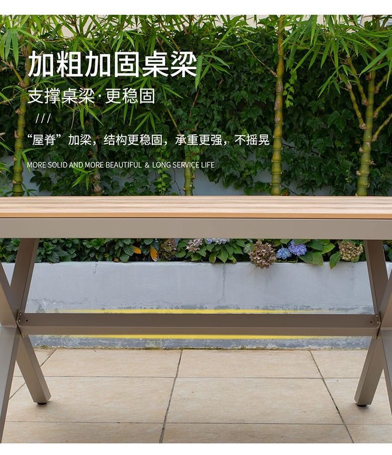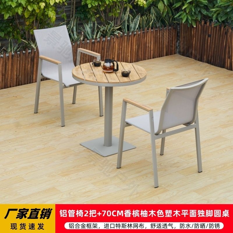 야외 안뜰 테이블과 의자 알루미늄 합금 야외 레저 플라스틱 목재 식탁 테라스 빌라 정원 부식 방지 목재 테이블과 의자 조합스토어 가기