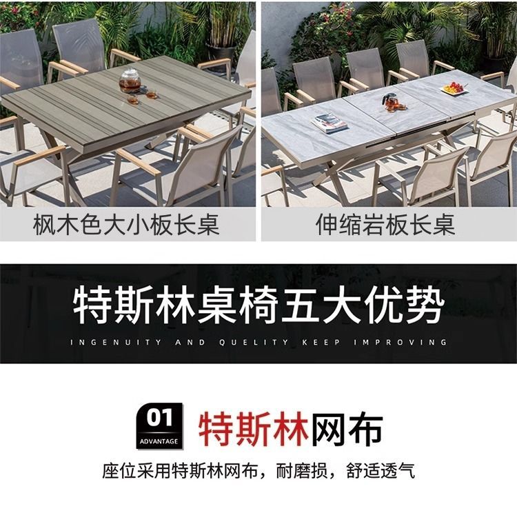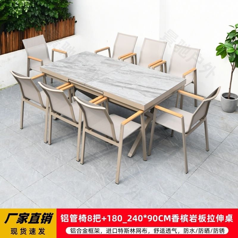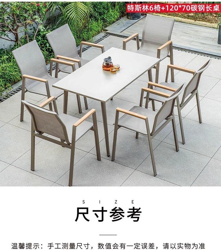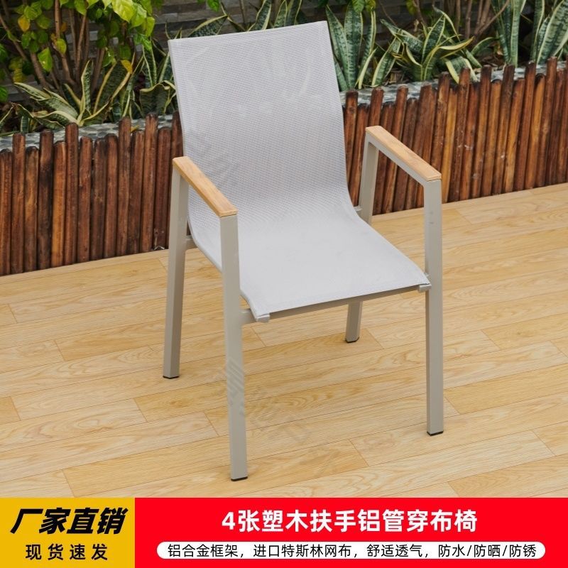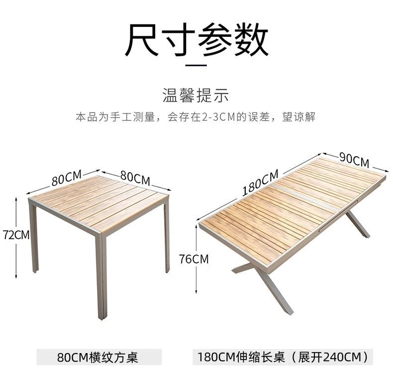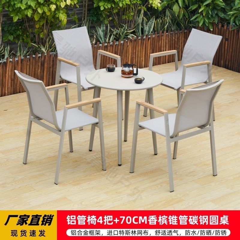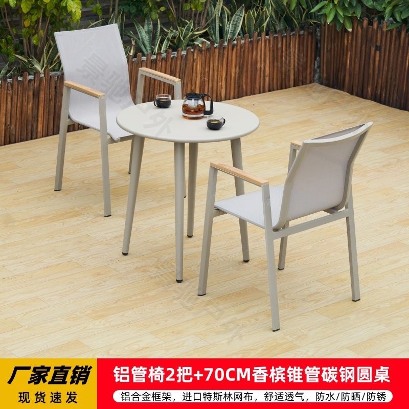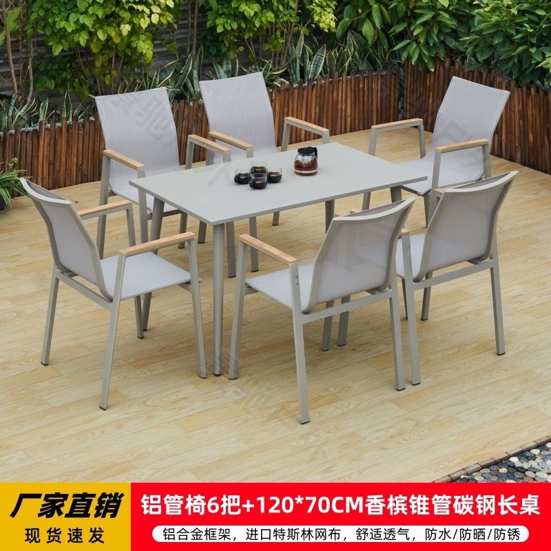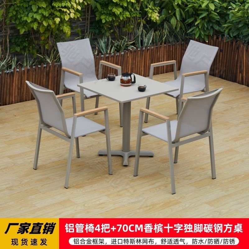 야외 안뜰 테이블과 의자 알루미늄 합금 야외 레저 플라스틱 목재 식탁 테라스 빌라 정원 부식 방지 목재 테이블과 의자 조합스토어 가기