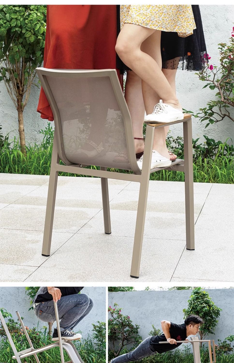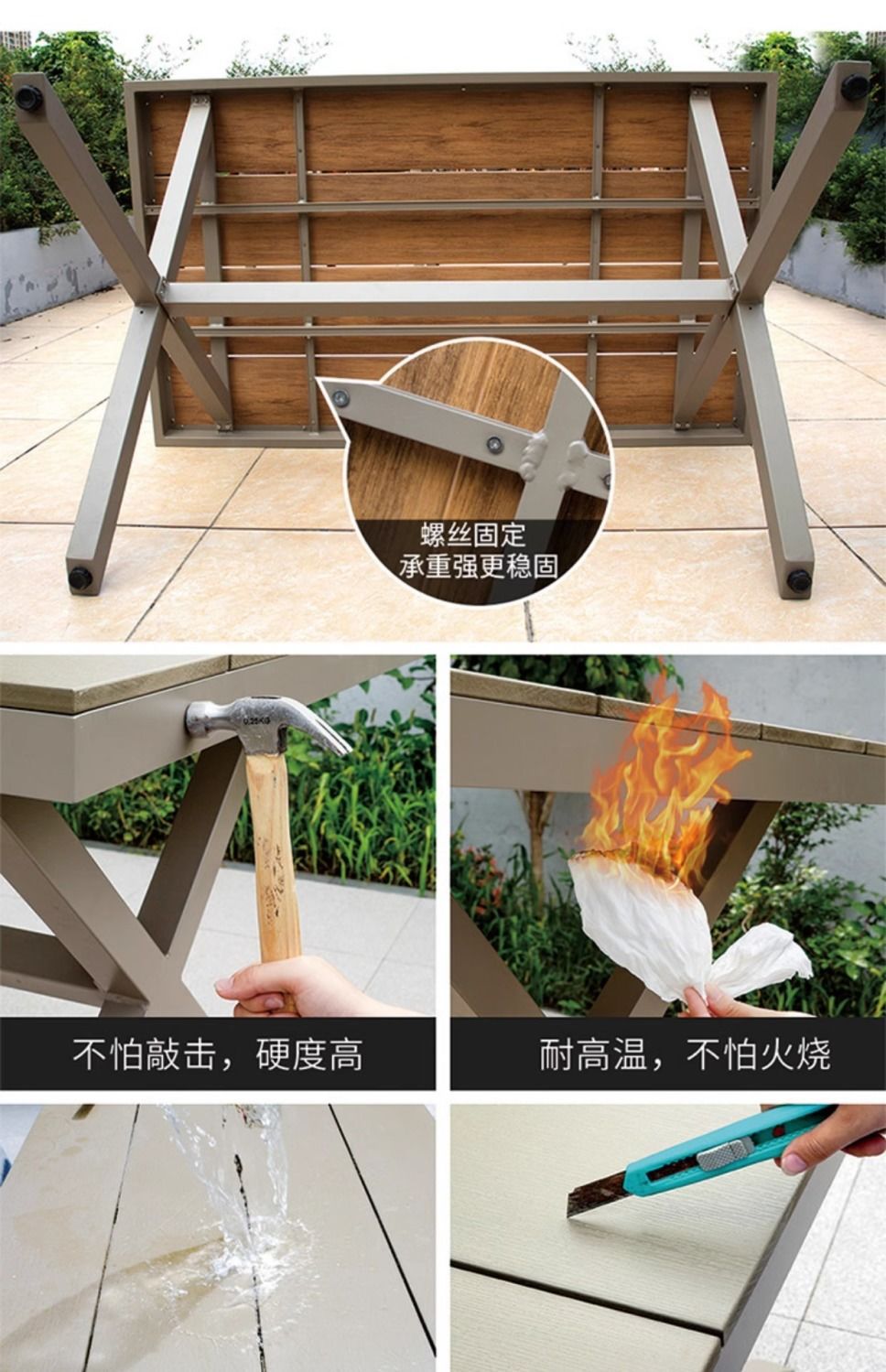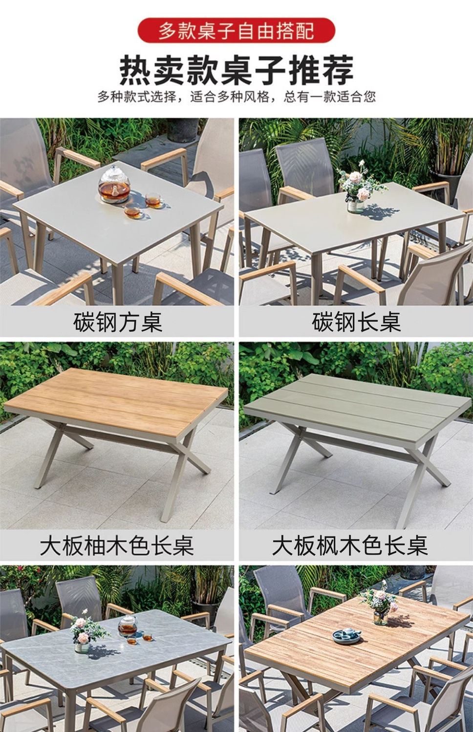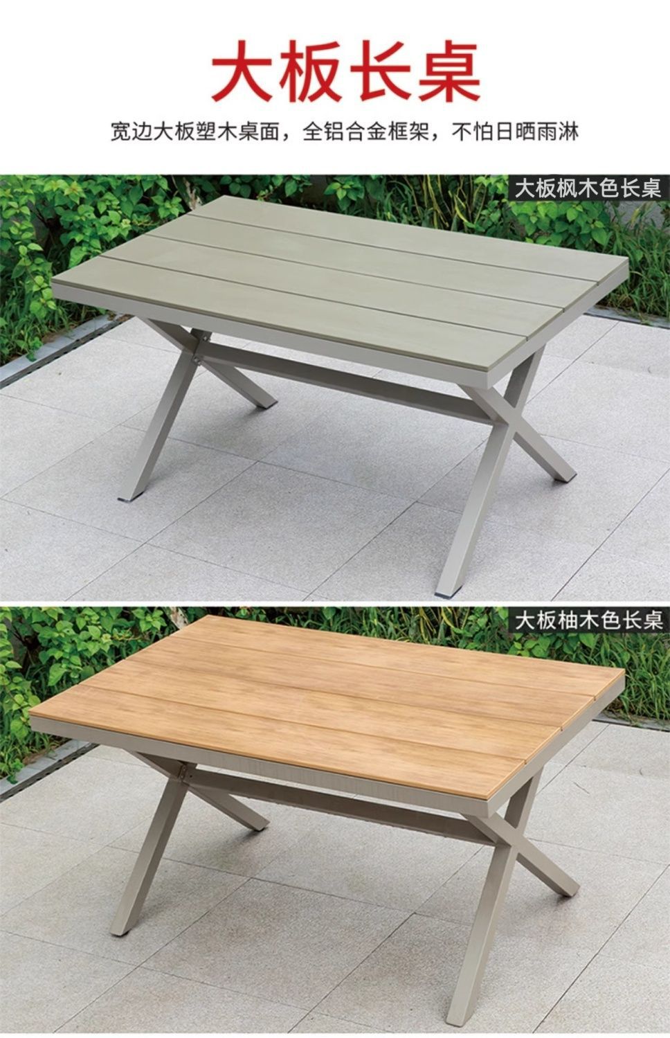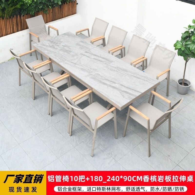 야외 안뜰 테이블과 의자 알루미늄 합금 야외 레저 플라스틱 목재 식탁 테라스 빌라 정원 부식 방지 목재 테이블과 의자 조합스토어 가기