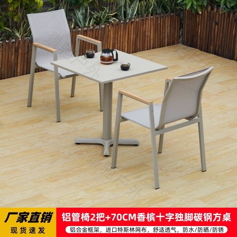 • 의자 2개 + 70CM 샴페인 크로스 외다리 탄소강 사각 테이블