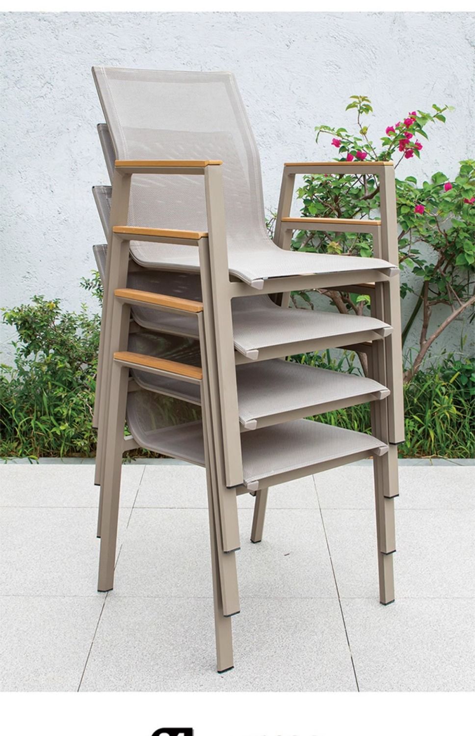 • 플라스틱 목재 팔걸이가 있는 천을 끼운 알루미늄 튜브 의자 4개