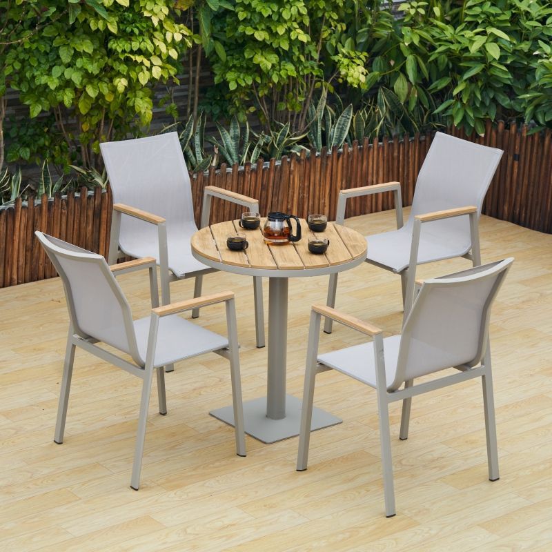 • 의자 4개 + 80CM 샴페인 티크 컬러 플라스틱 목재 루스 보드 원형 테이블