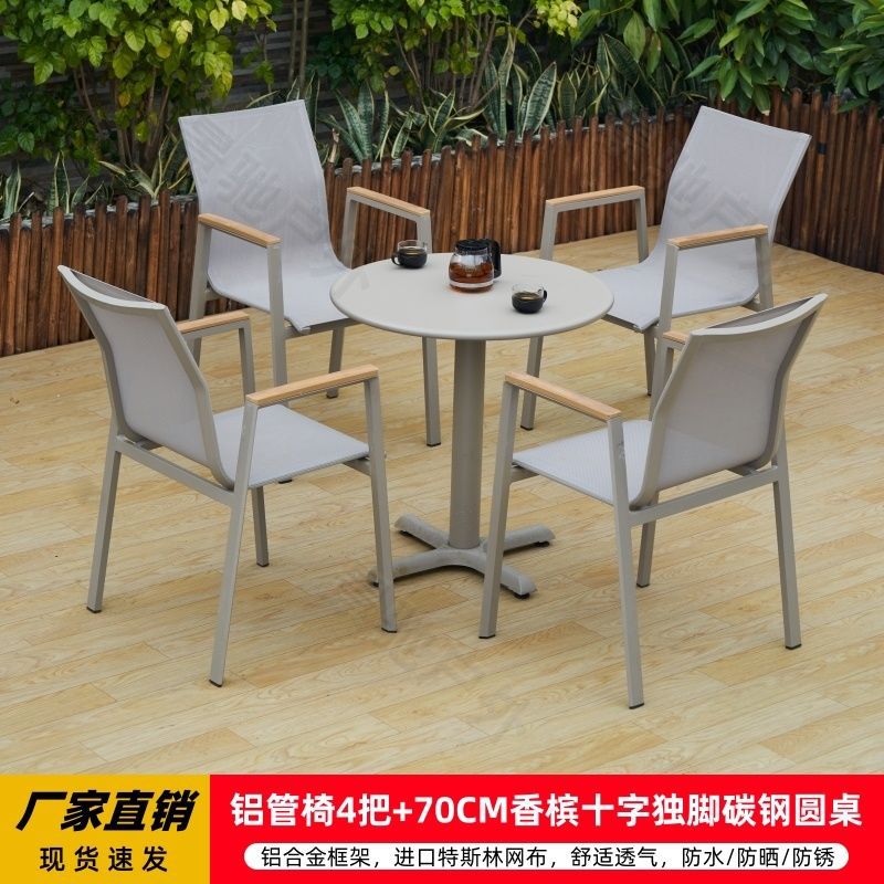 • 의자 4개 + 70CM 샴페인 크로스 외다리 탄소강 원형 테이블