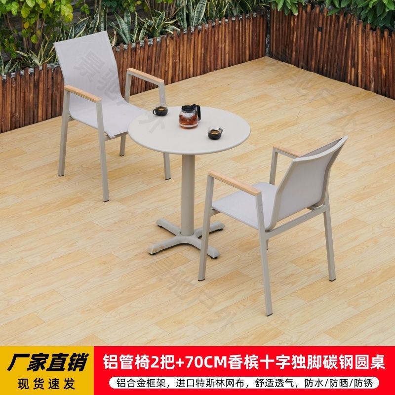 • 의자 2개 + 70CM 샴페인 크로스 외다리 탄소강 원형 테이블