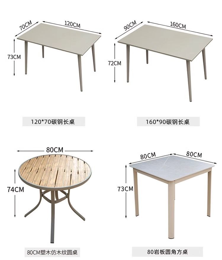 • 의자 6개 + 120CM 샴페인 콘 튜브 탄소강 긴 테이블