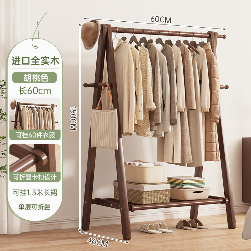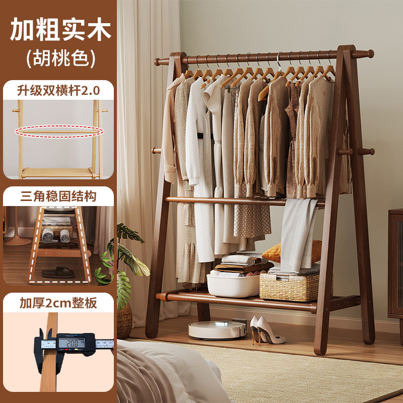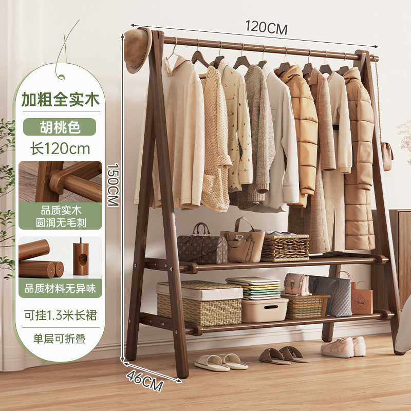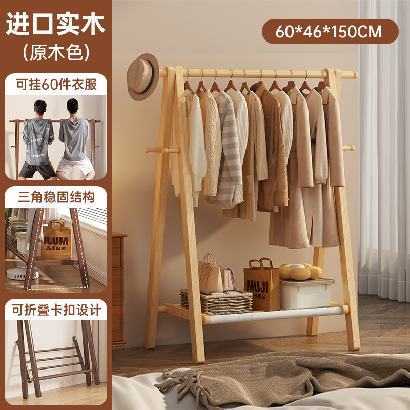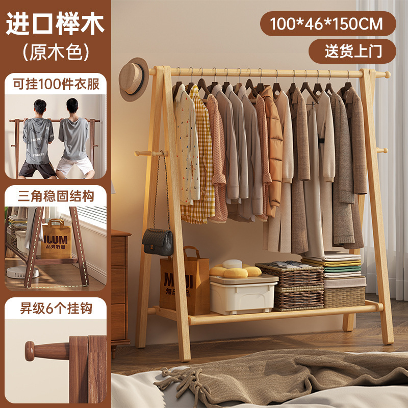 단단한 나무 옷걸이 바닥 스탠딩 침실 코트 랙 가정용 옷 건조 랙 실내 옷 보관 랙 나무 옷 걸이