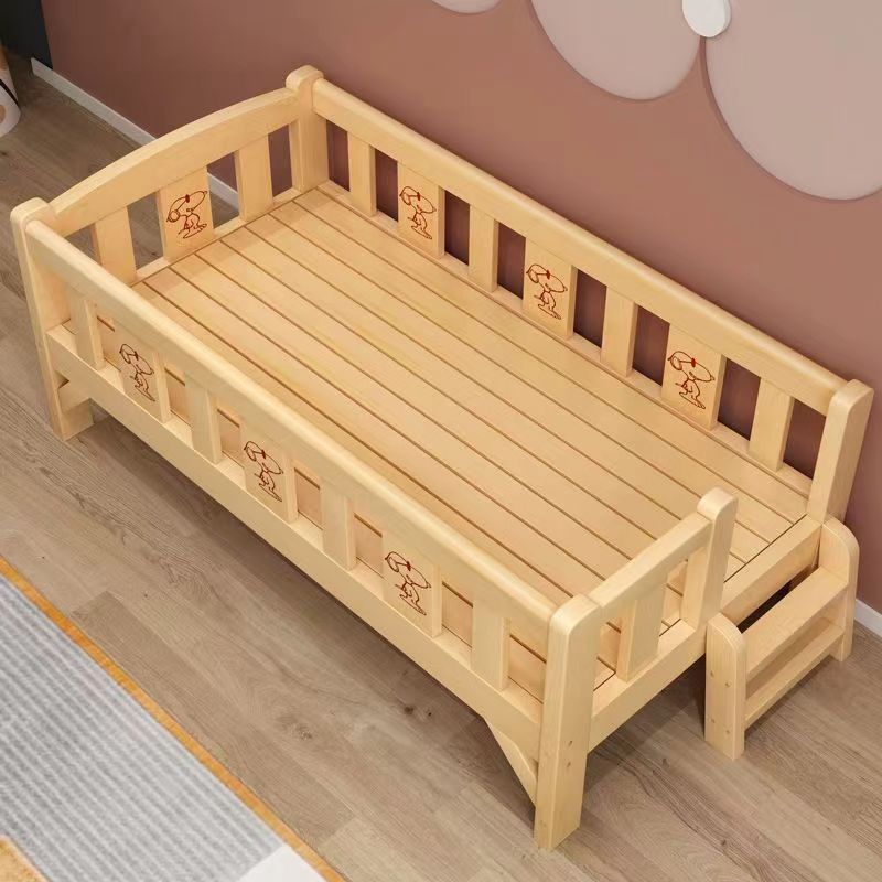 가드레일이 있는 단단한 나무 어린이 접합 침대 아기 유아용 침대 신생아 소년 소녀 접합 대형 침대 확대 유물