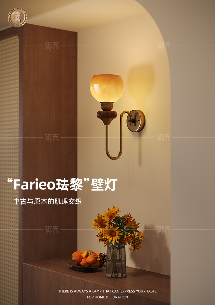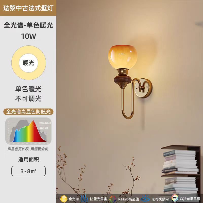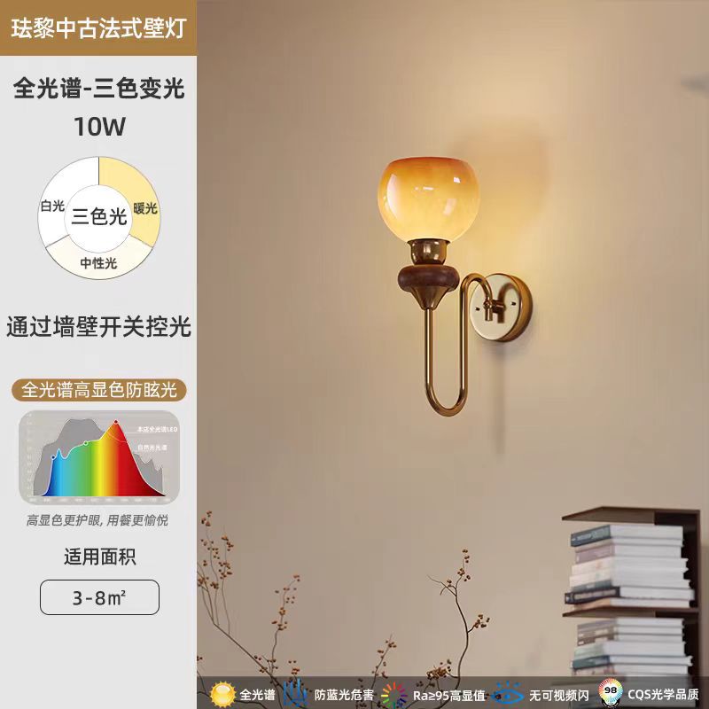 프랑스 복고풍 크림 벽 램프 벽 램프 거실 배경 침실 머리맡 독서 램프 눈 보호 골동품 유리 계단 램프스토어 가기