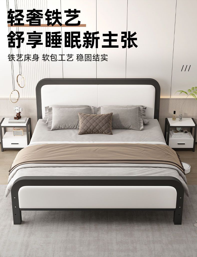 맞춤형 소프트 침대 더블 사이즈 1.8x 2m 철제 침대 두꺼워지고 강화된 구조 1.62m 싱글 사이즈 해외배송스토어 가기
