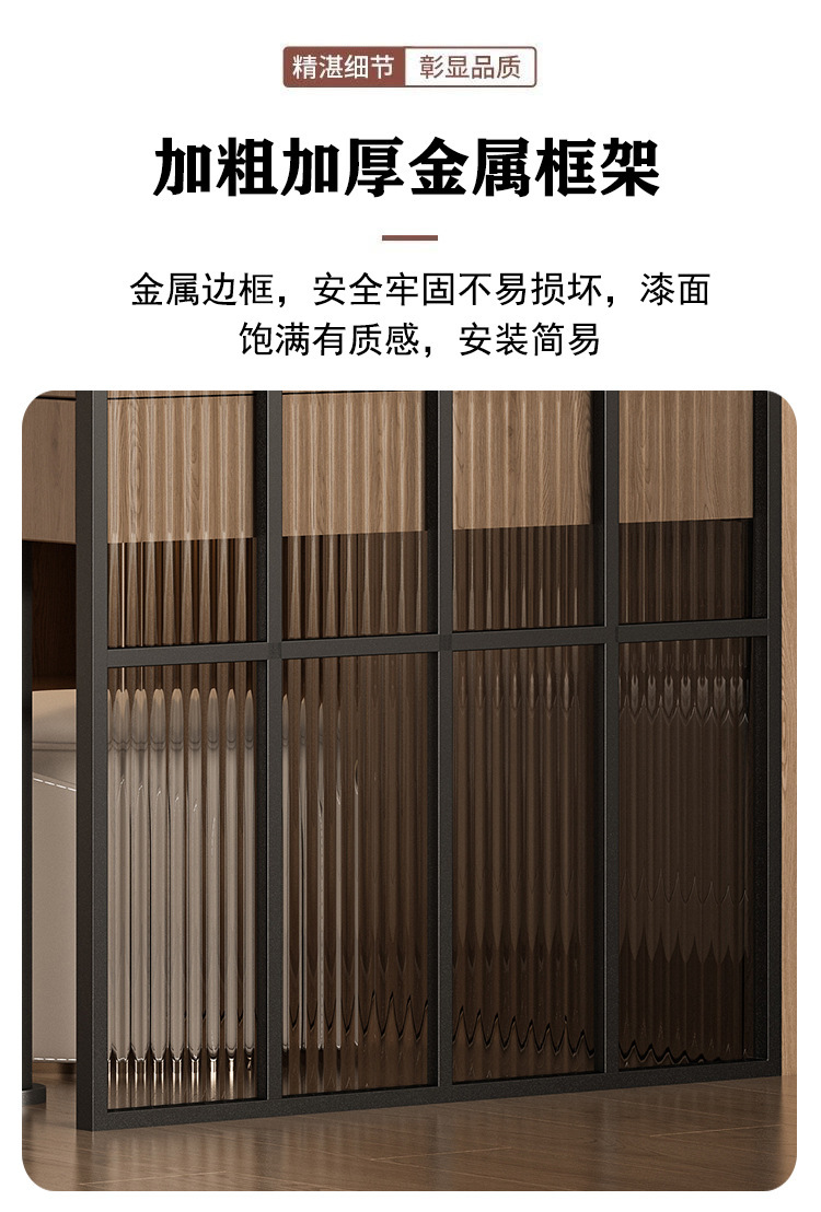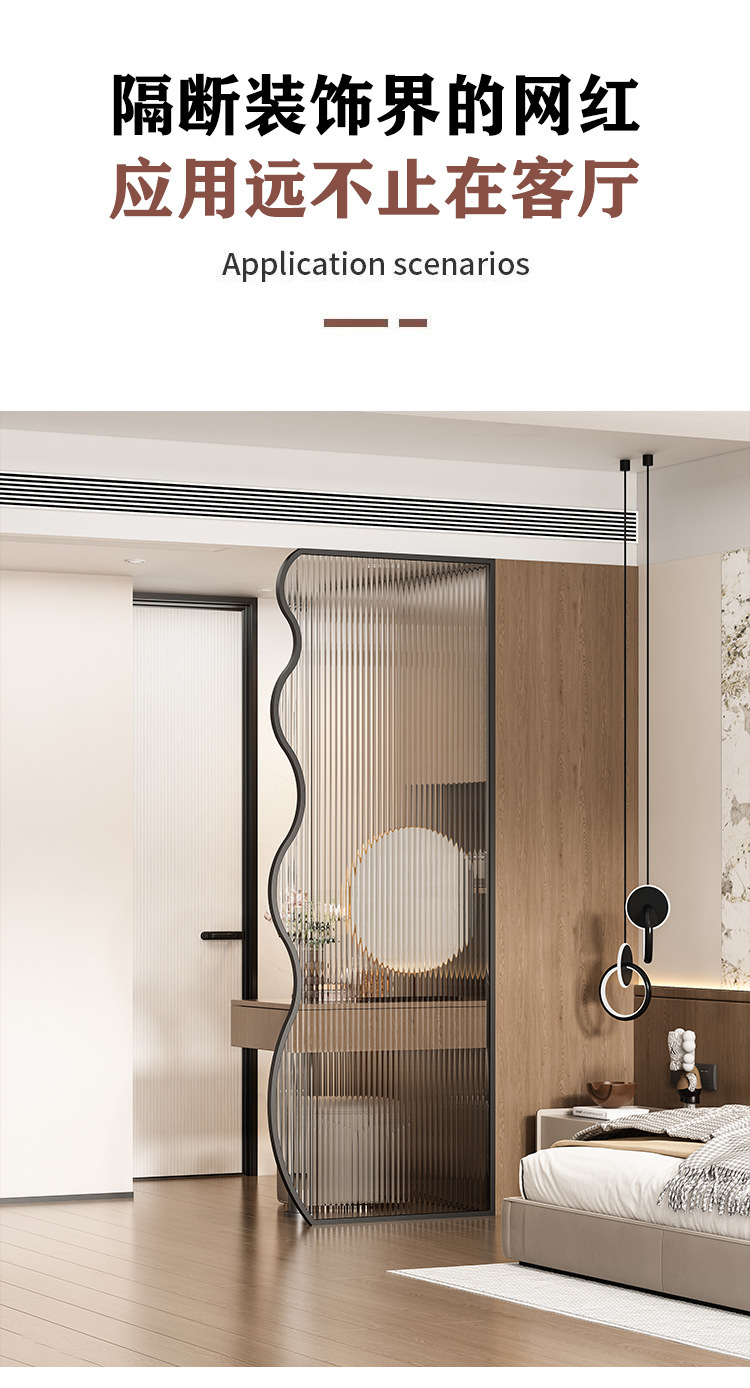 간단한 장虹 유리 파티션 스테인레스 스틸 물 잔물결 유리 위생 거실 크림 스타일 철 스크린 차단스토어 가기