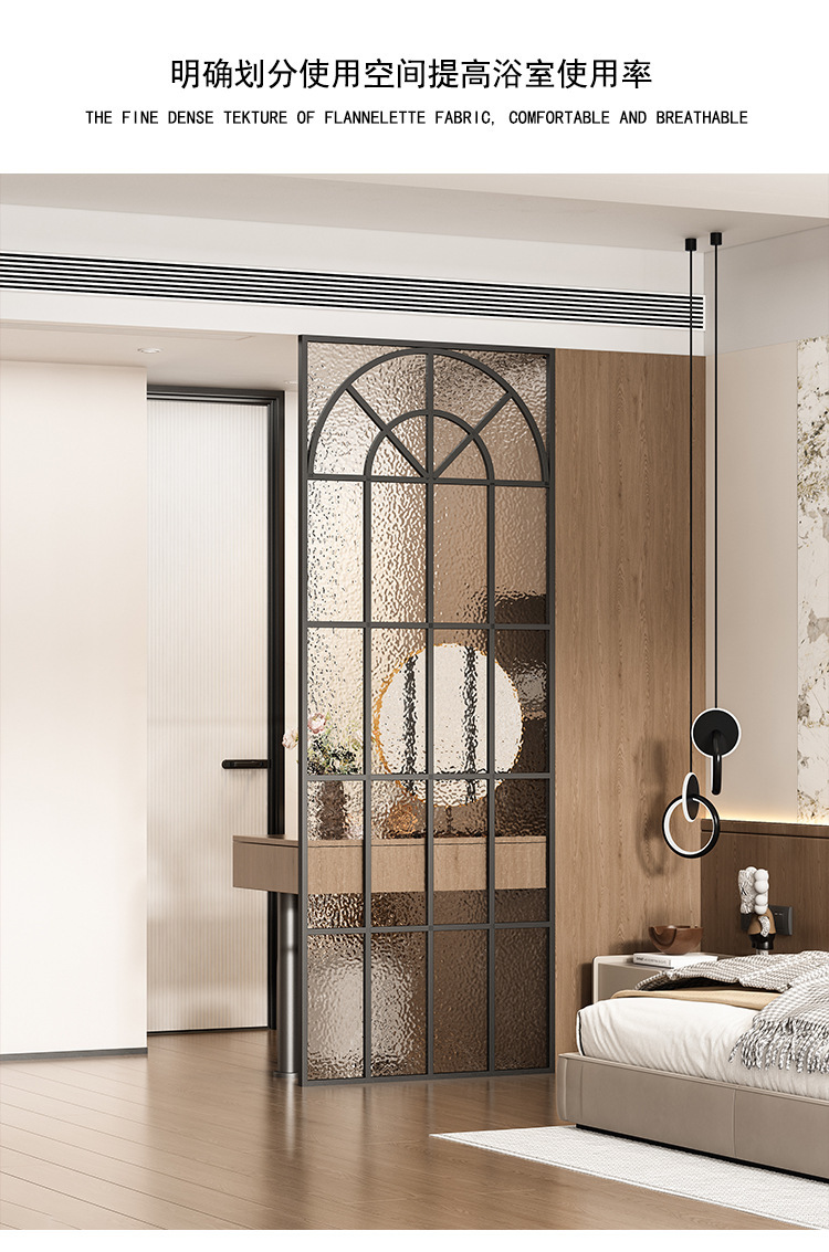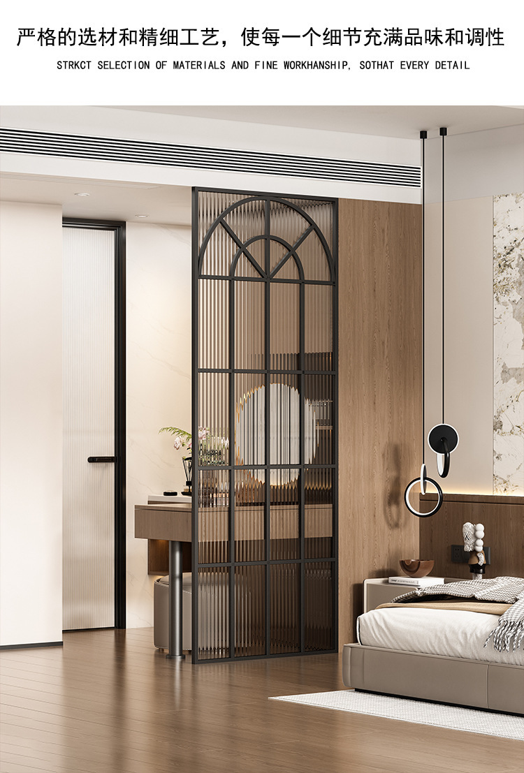 간단한 장虹 유리 파티션 스테인레스 스틸 물 잔물결 유리 위생 거실 크림 스타일 철 스크린 차단