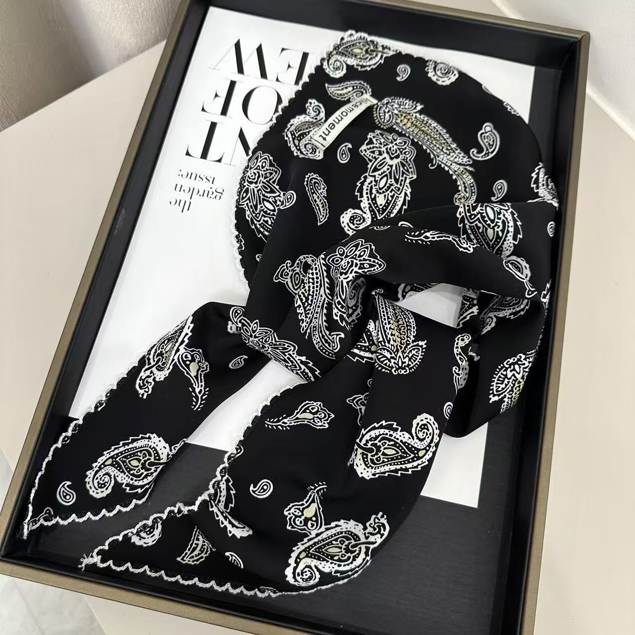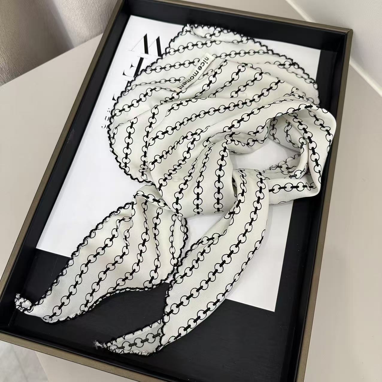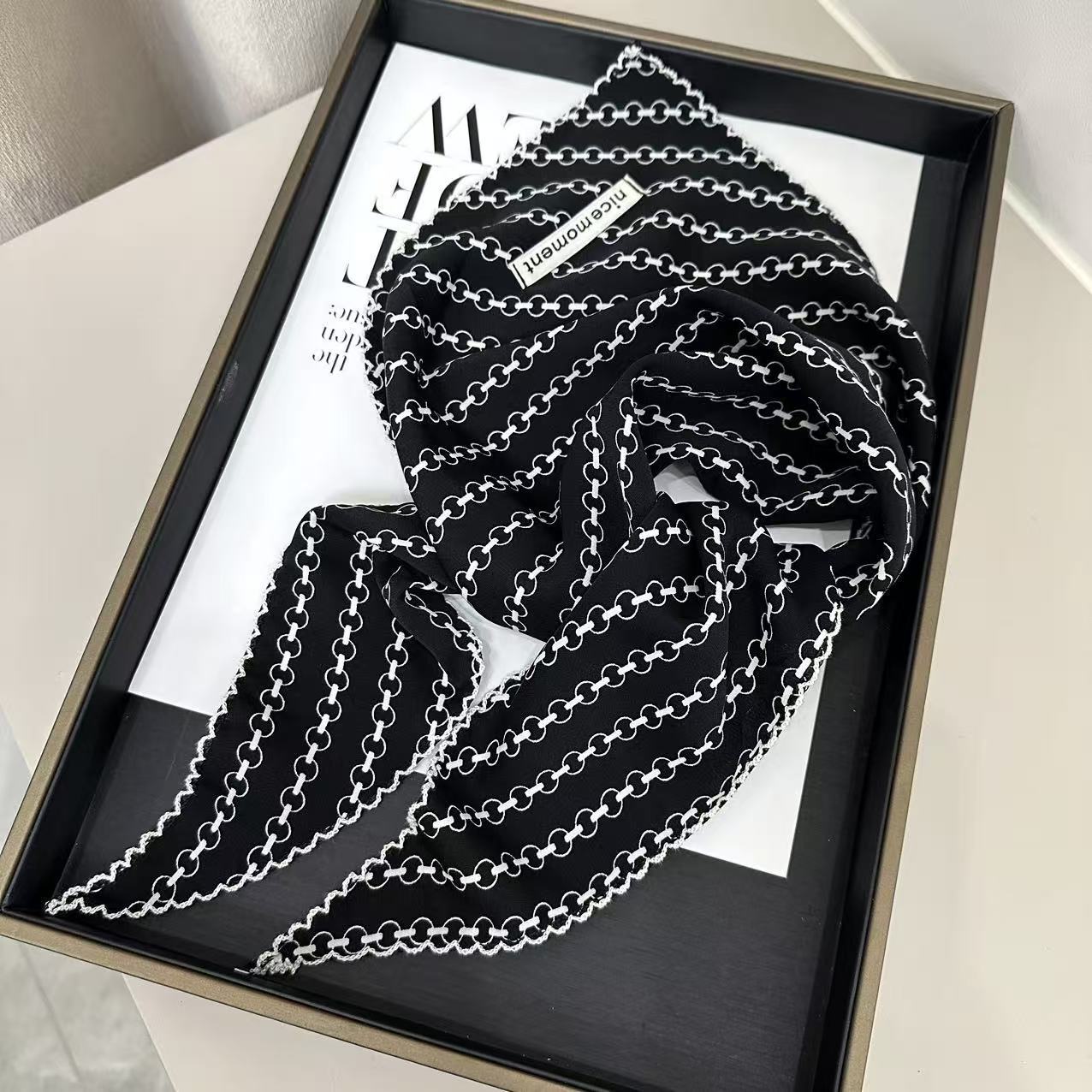 2025 새로운 스타일의 예술적이고 패셔너블한 여성용 실크 스카프, 봄, 가을 얇은 스카프, 다용도의 고급 외부 착용