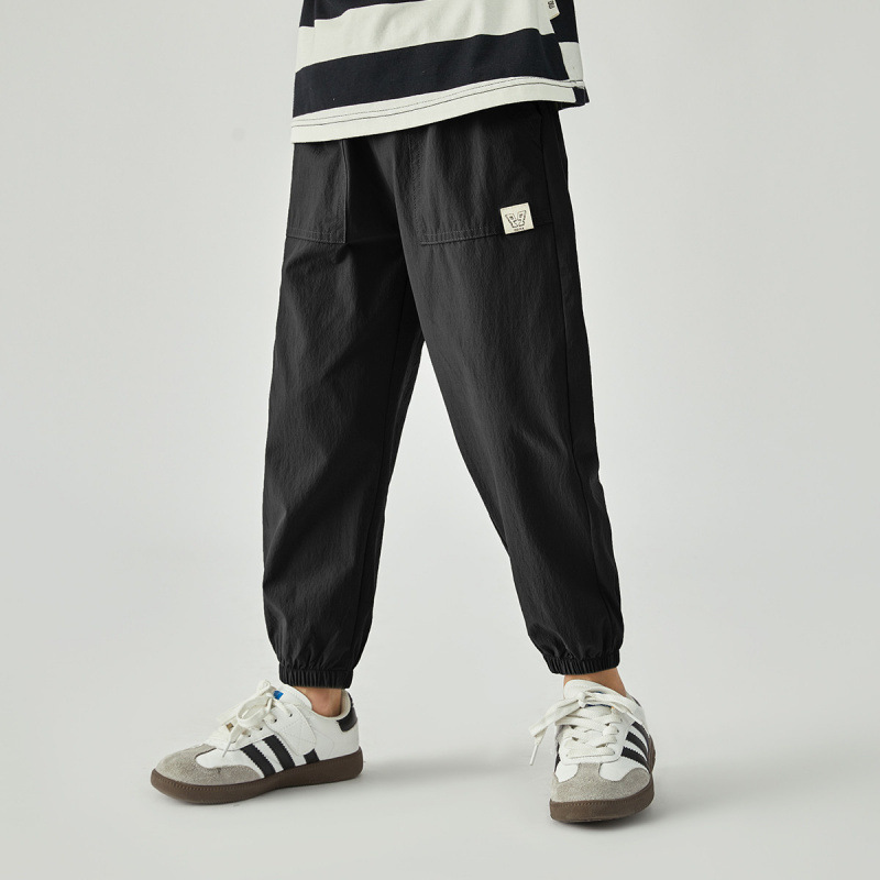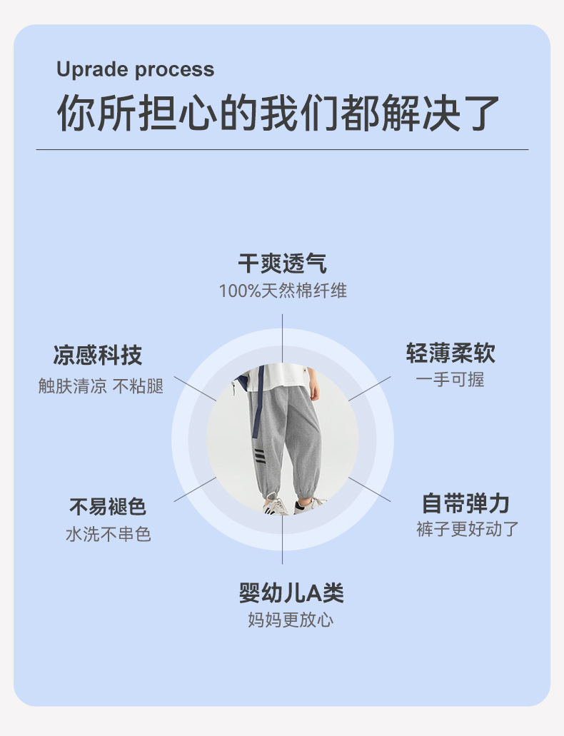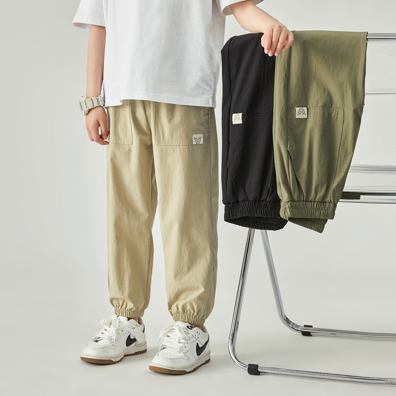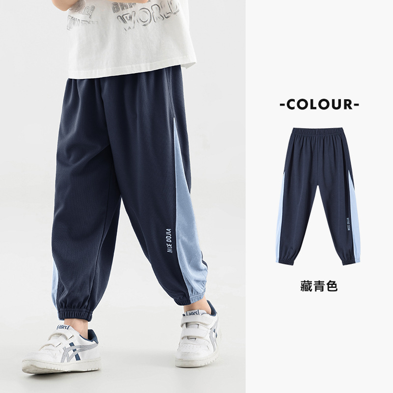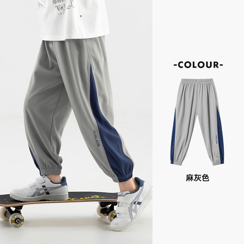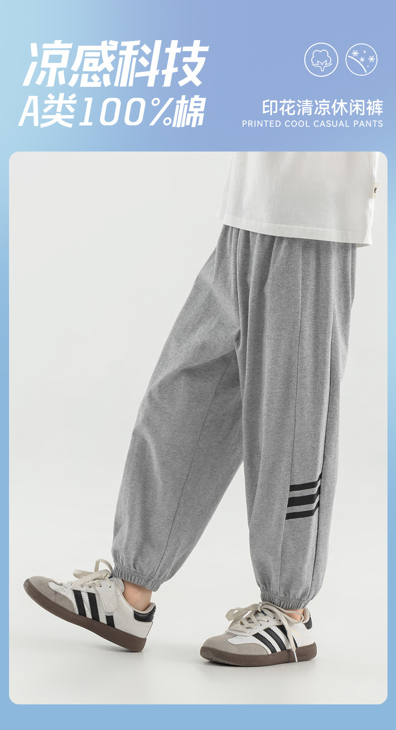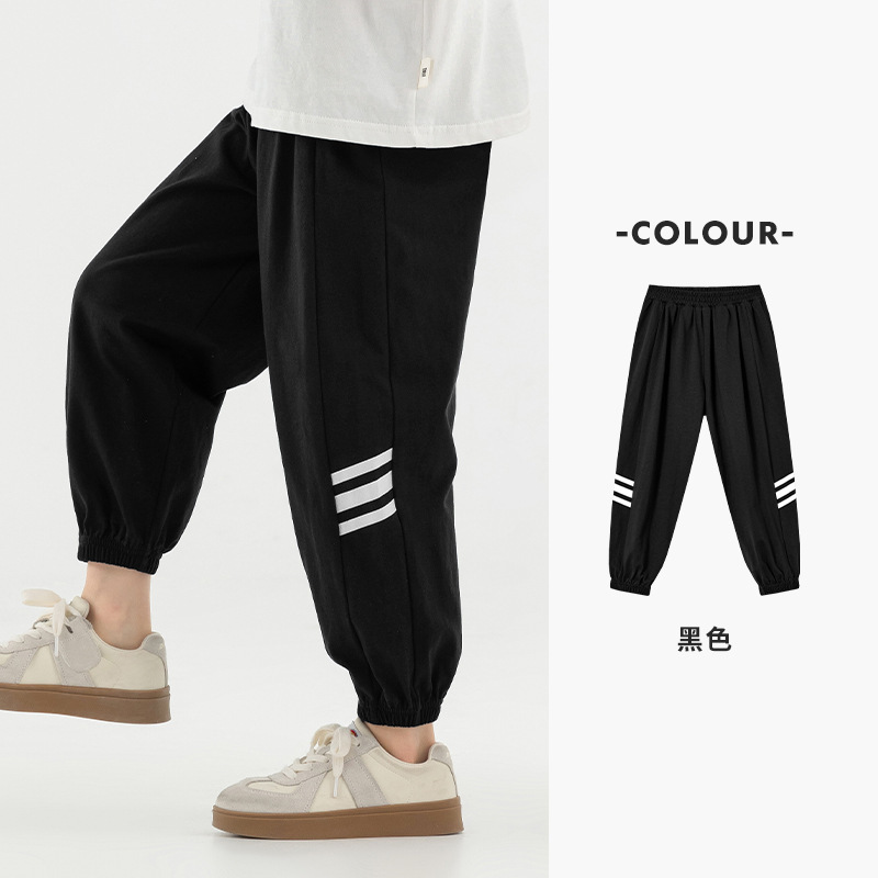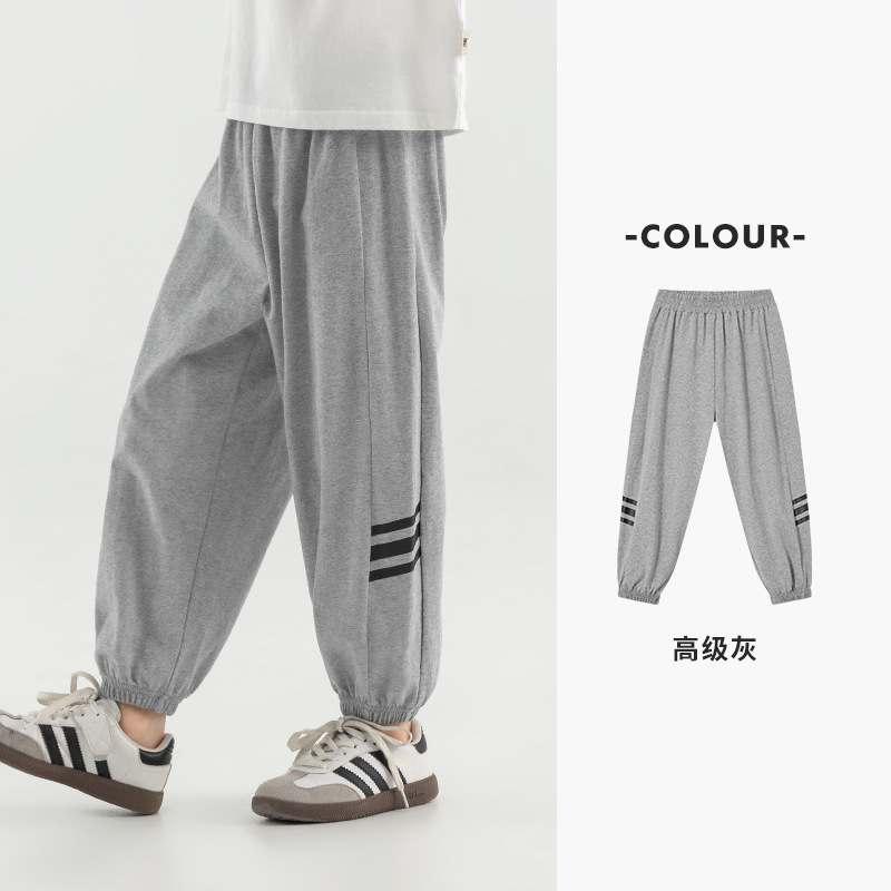 Duojia 소년 모기 방지 바지 순면 어린이 얇은 긴 바지 세 줄무늬 캠퍼스 스포츠 바지 여름 중대형 어린이스토어 가기