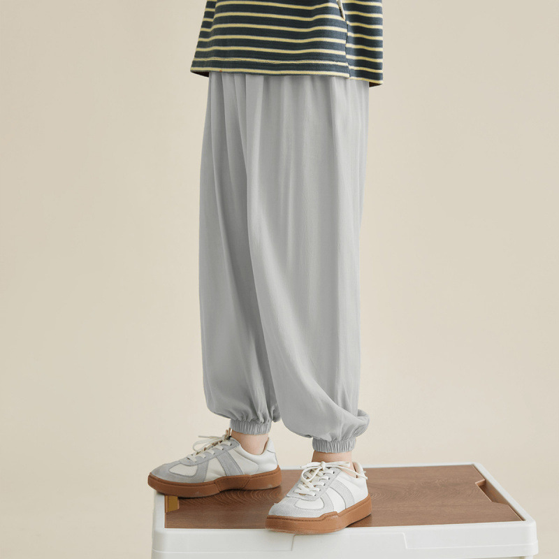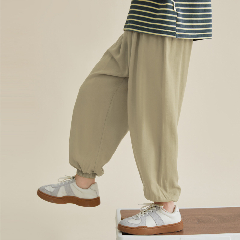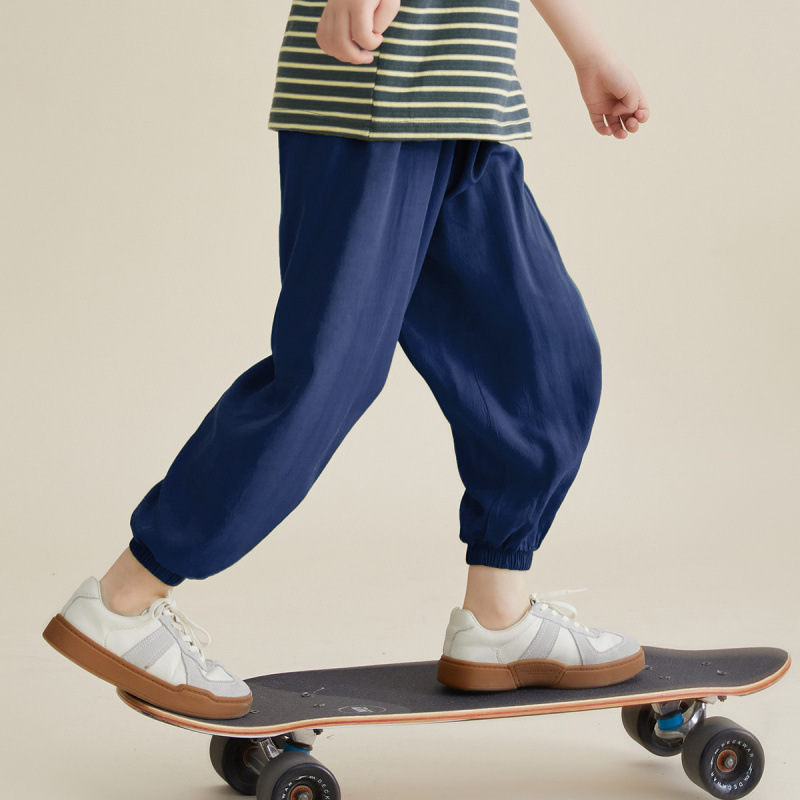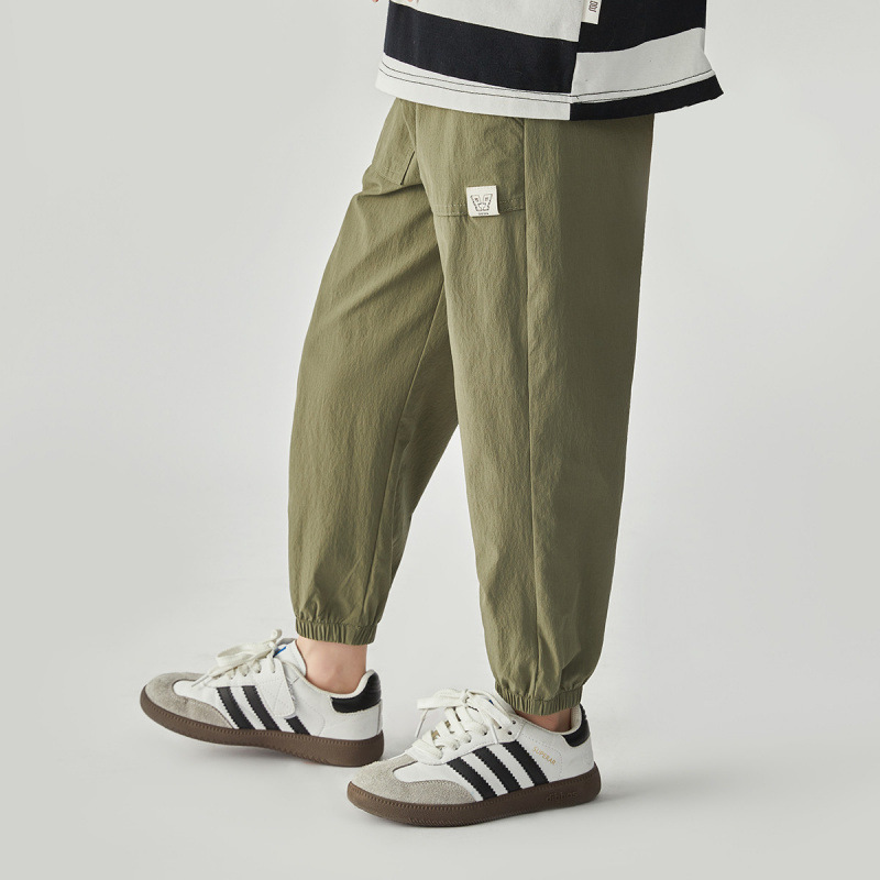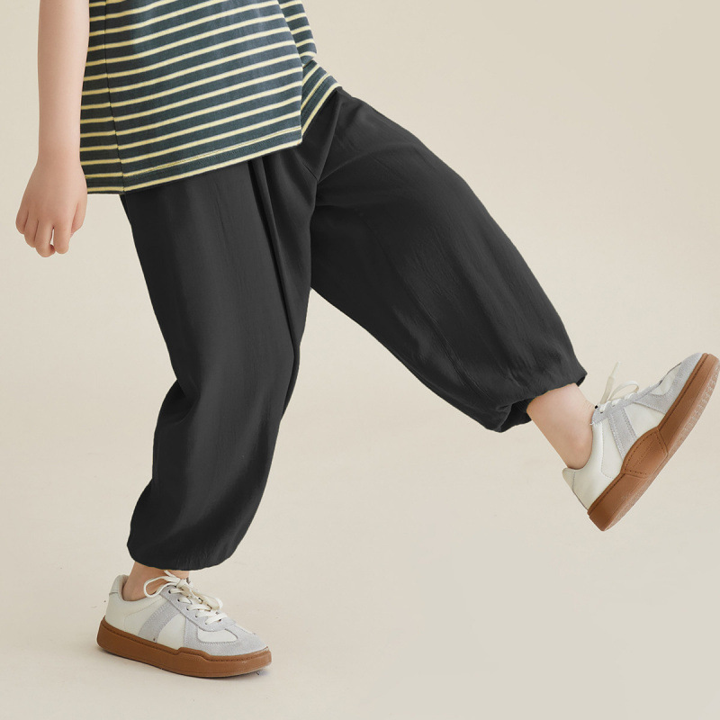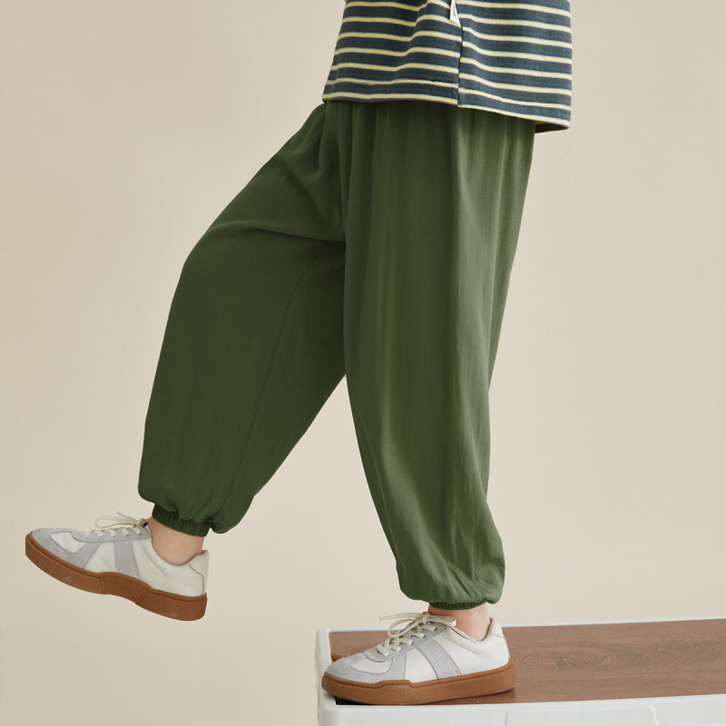 Duojia 소년 모기 방지 바지 순면 어린이 얇은 긴 바지 세 줄무늬 캠퍼스 스포츠 바지 여름 중대형 어린이