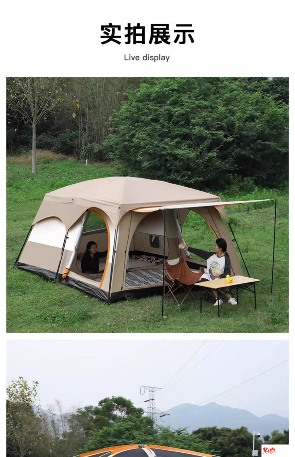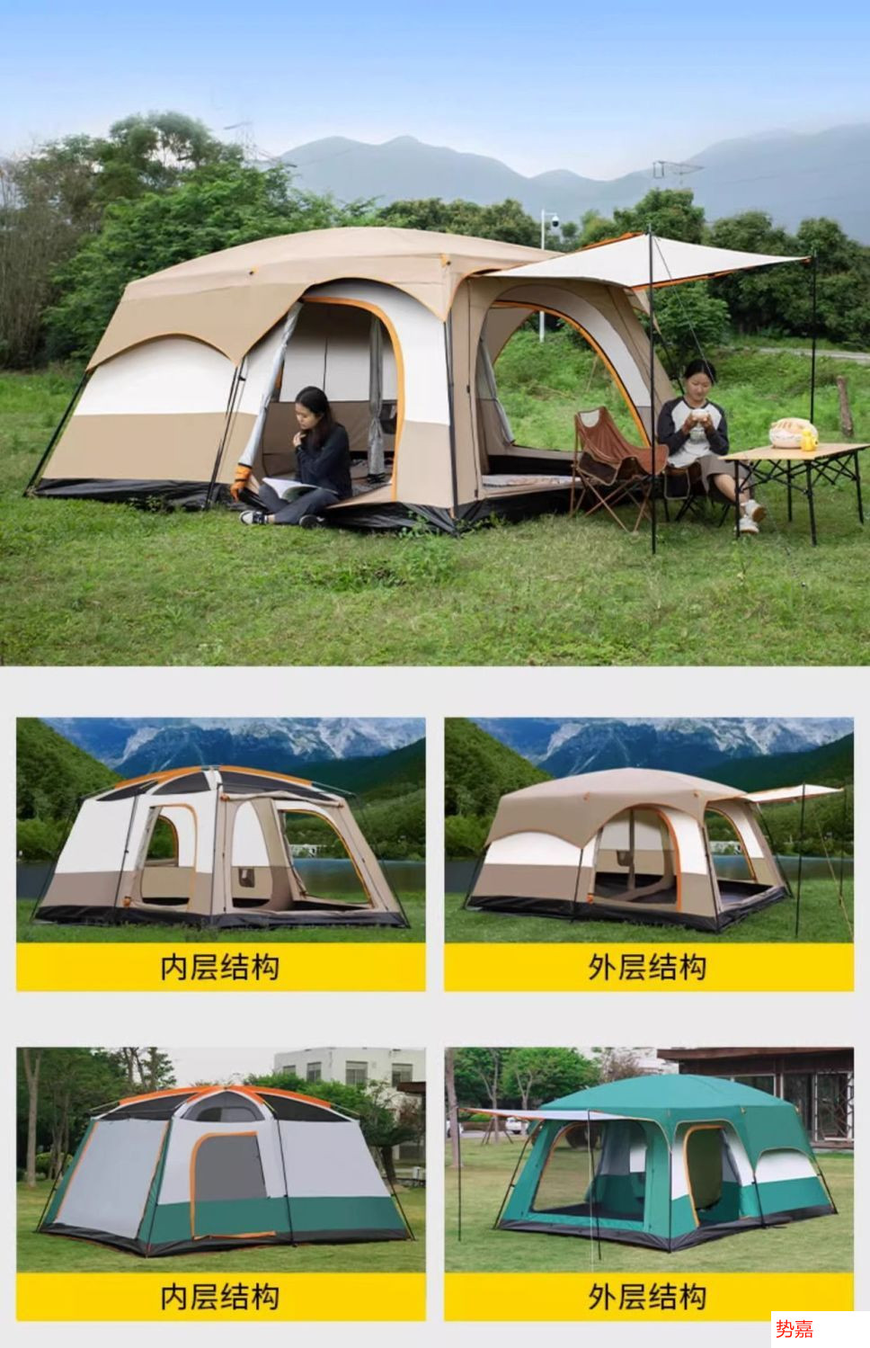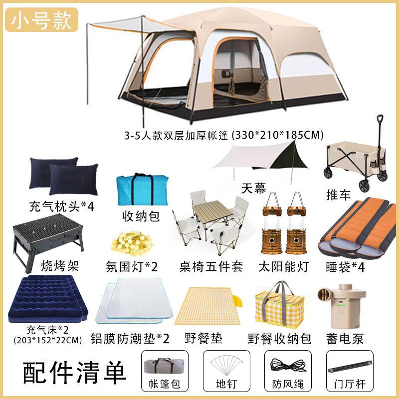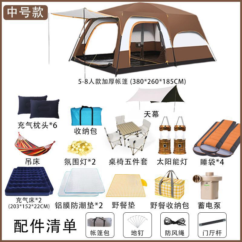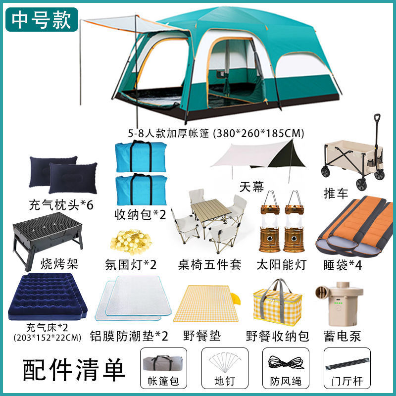 야외 캠핑 대형 텐트 2실 1거실 공원 캠핑 용품 및 장비 휴대용 접이식 자외선 차단제 모기 및 비 방지스토어 가기