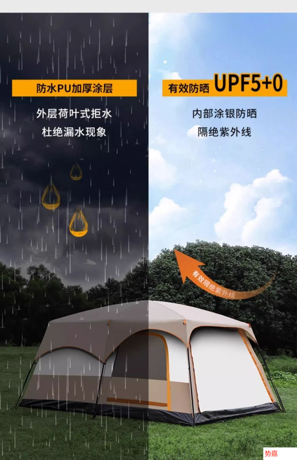 야외 캠핑 대형 텐트 2실 1거실 공원 캠핑 용품 및 장비 휴대용 접이식 자외선 차단제 모기 및 비 방지