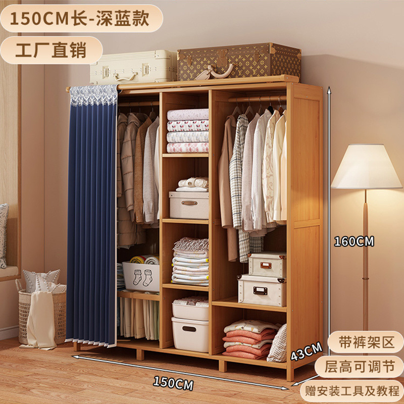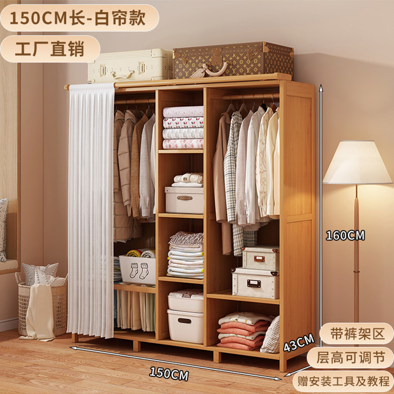 원목 간이 옷장 임대 방 방진 경제적이고 튼튼하고 내구성이 뛰어난 커튼이 있는 옷장 침실 대용량
