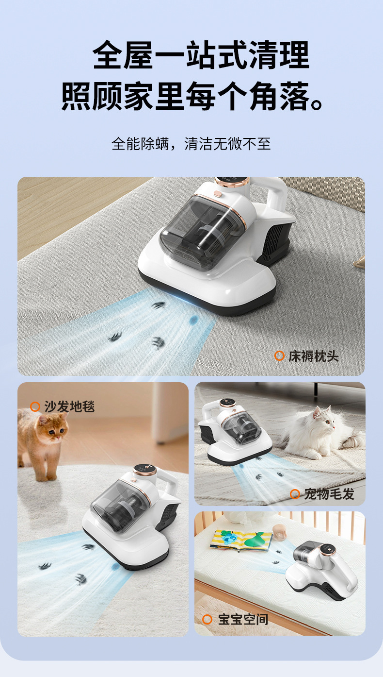 가정용 진드기 제거제, 이중 컵 필터링, 강력한 UV 침대 진드기 제거제, 소형 무선 진공 청소기스토어 가기
