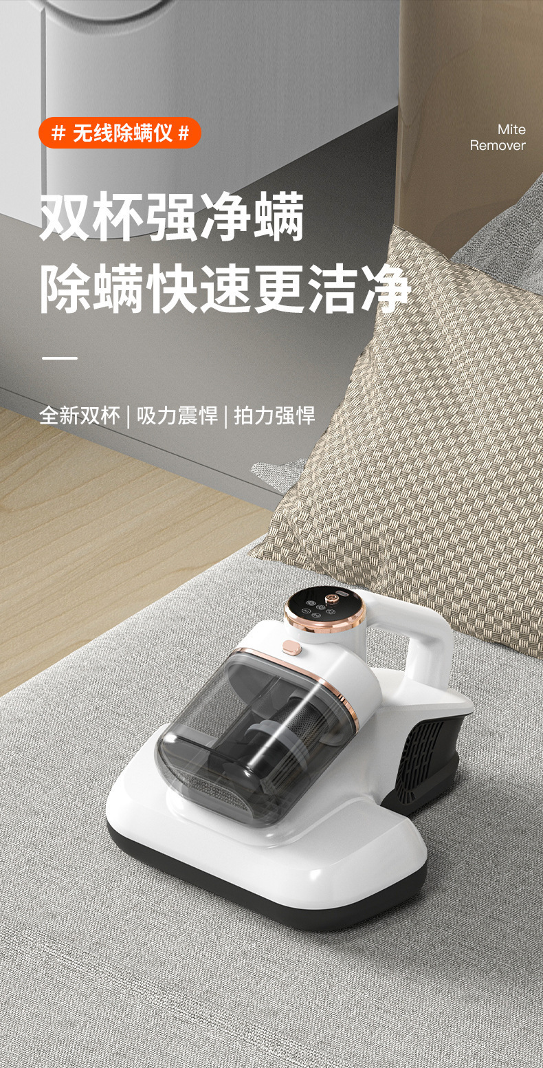 가정용 진드기 제거제, 이중 컵 필터링, 강력한 UV 침대 진드기 제거제, 소형 무선 진공 청소기