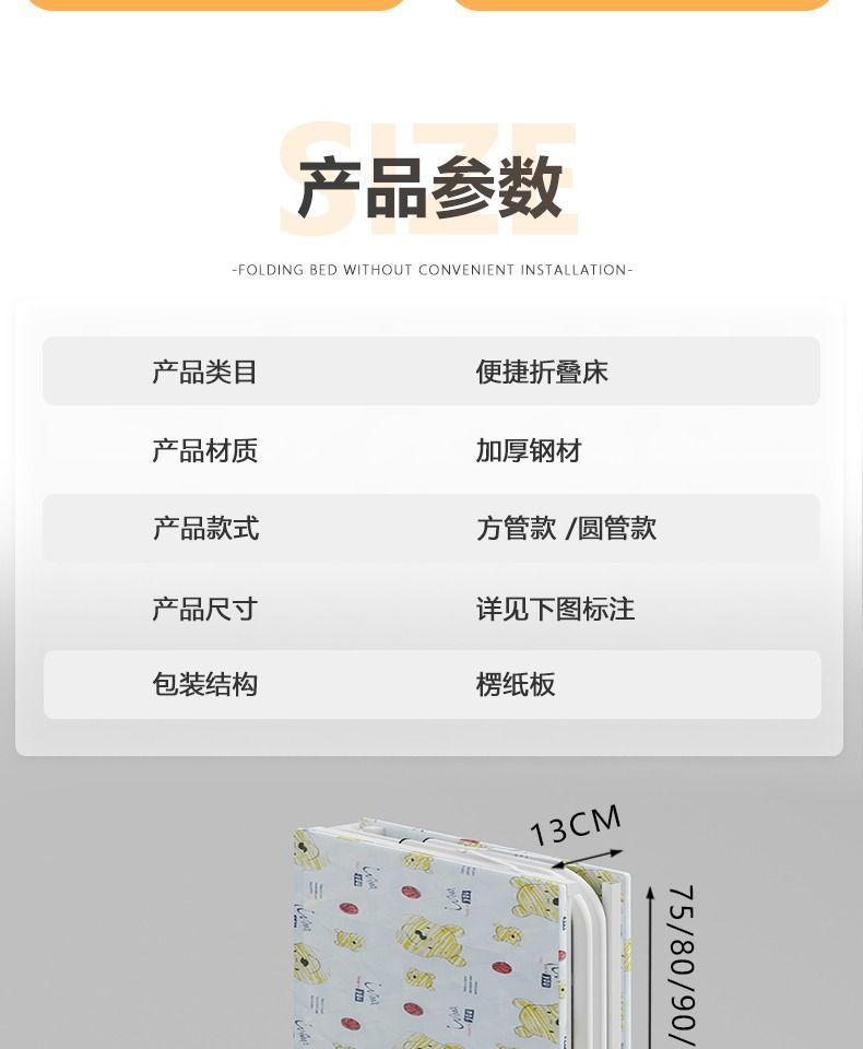 • 전체 길이 180cm 폭 75cm 다채로운 접이식 침대