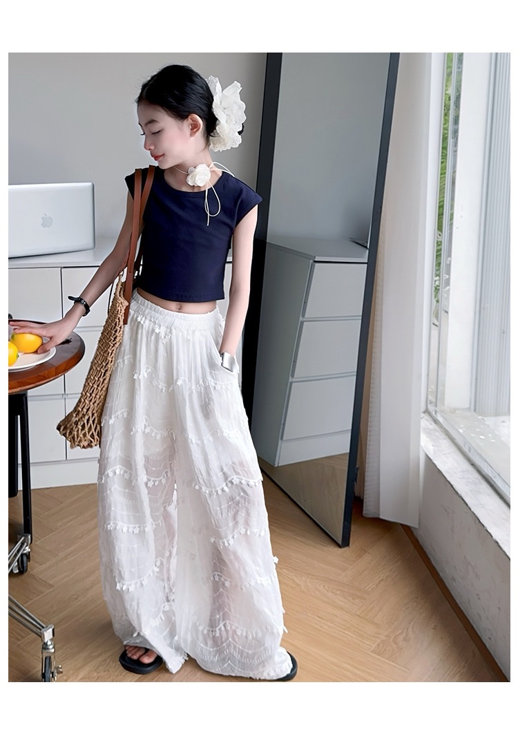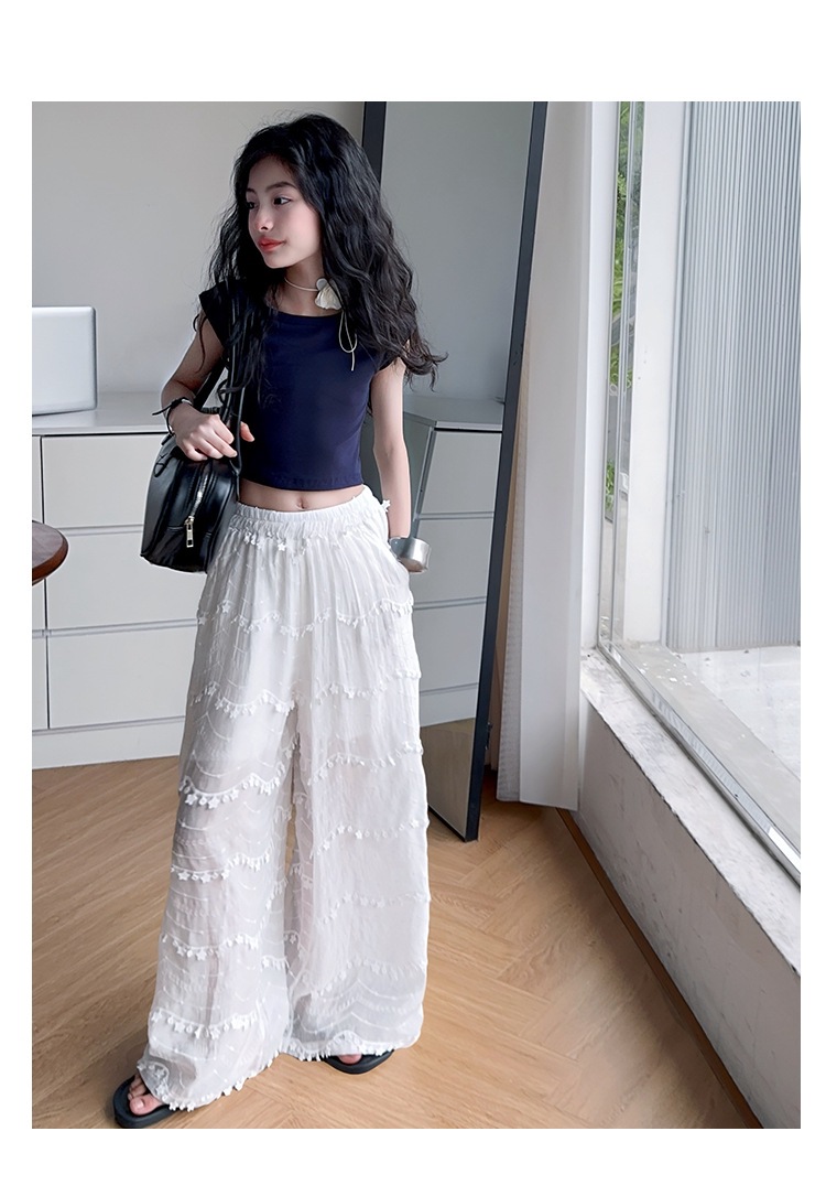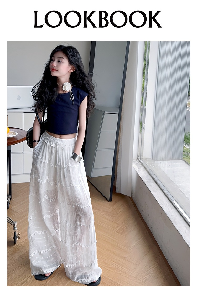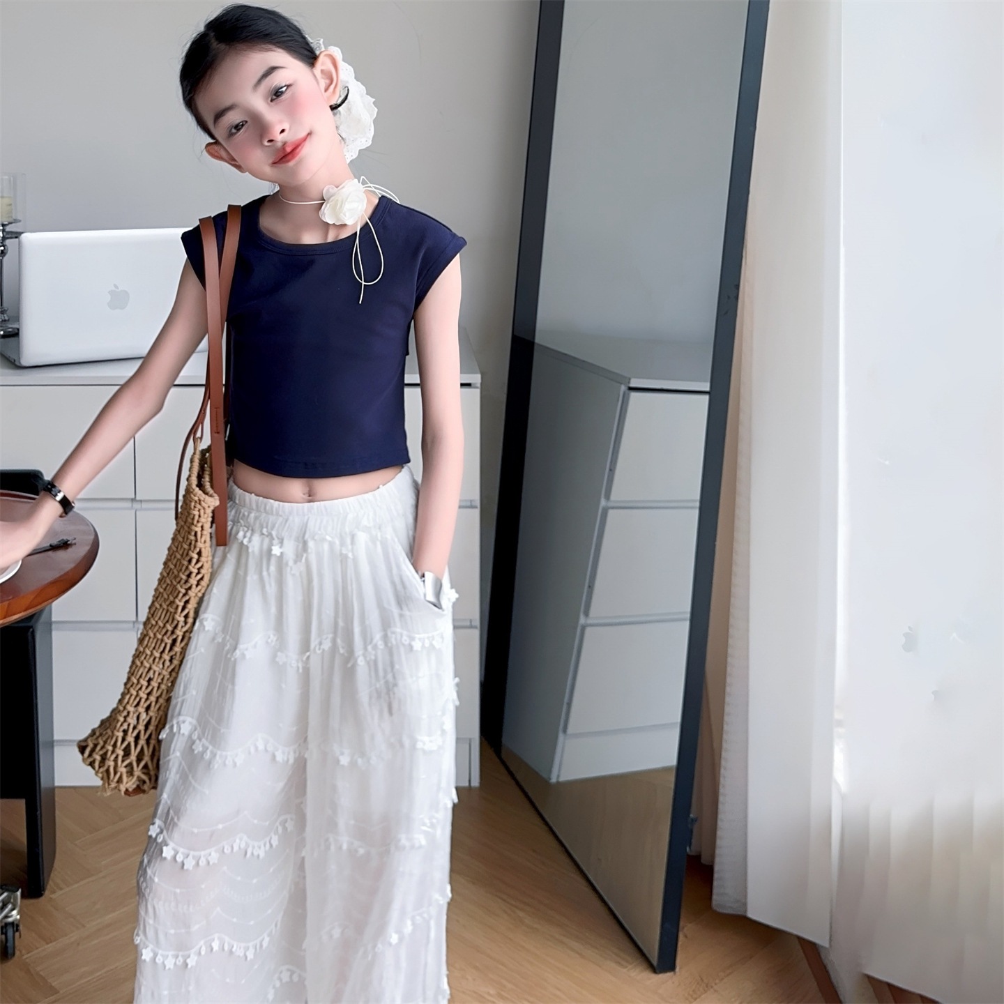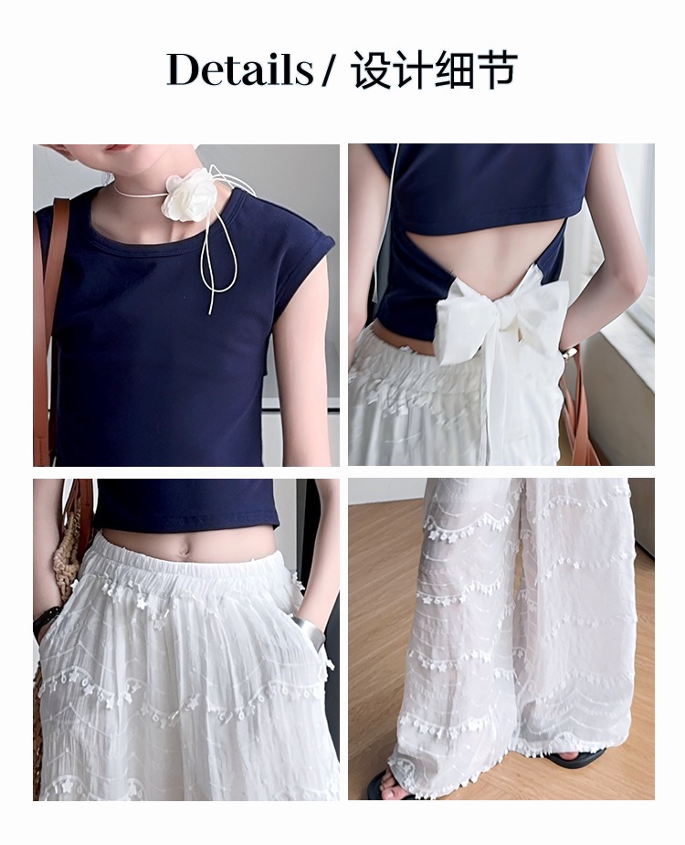 여아 모기 방지 바지 정장, 패셔너블하고 세련된 여름 의류, 아동복 2025 새로운 아동용 백리스 조끼 티셔츠 러브 팬츠