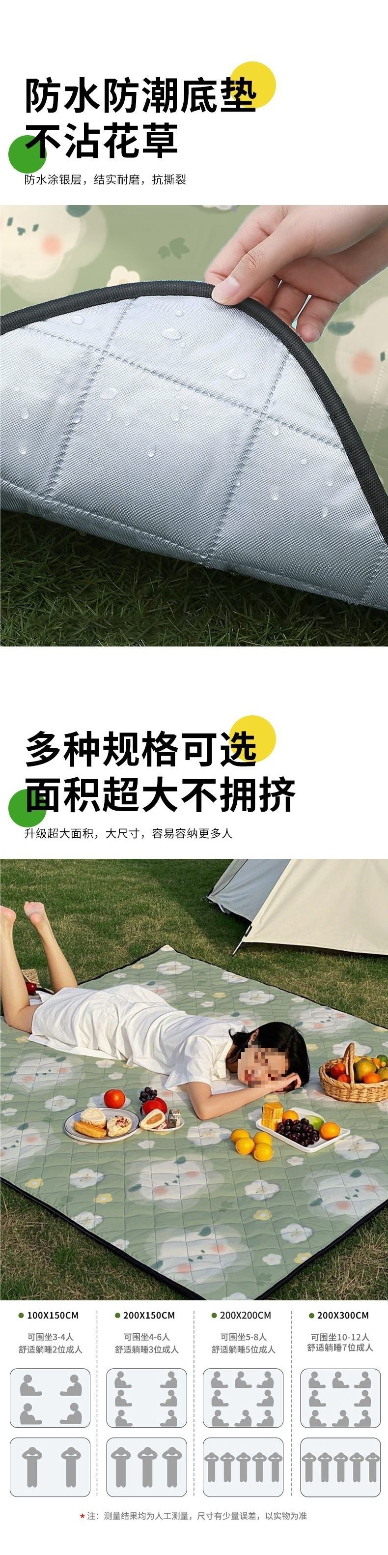 초대형 3m 초음파 피크닉 매트 방습 매트 두꺼운 야외 캠핑 매트 쿠션 비치 매트 휴대용 바닥 매트
