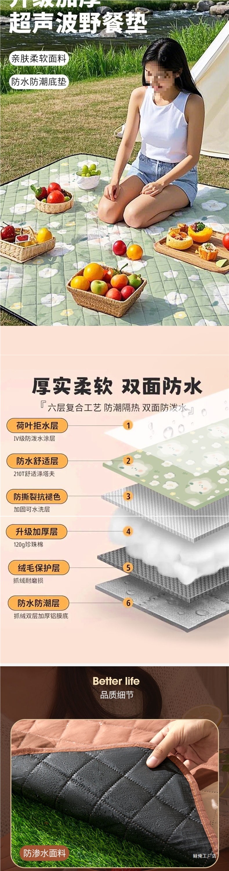 초대형 3m 초음파 피크닉 매트 방습 매트 두꺼운 야외 캠핑 매트 쿠션 비치 매트 휴대용 바닥 매트스토어 가기