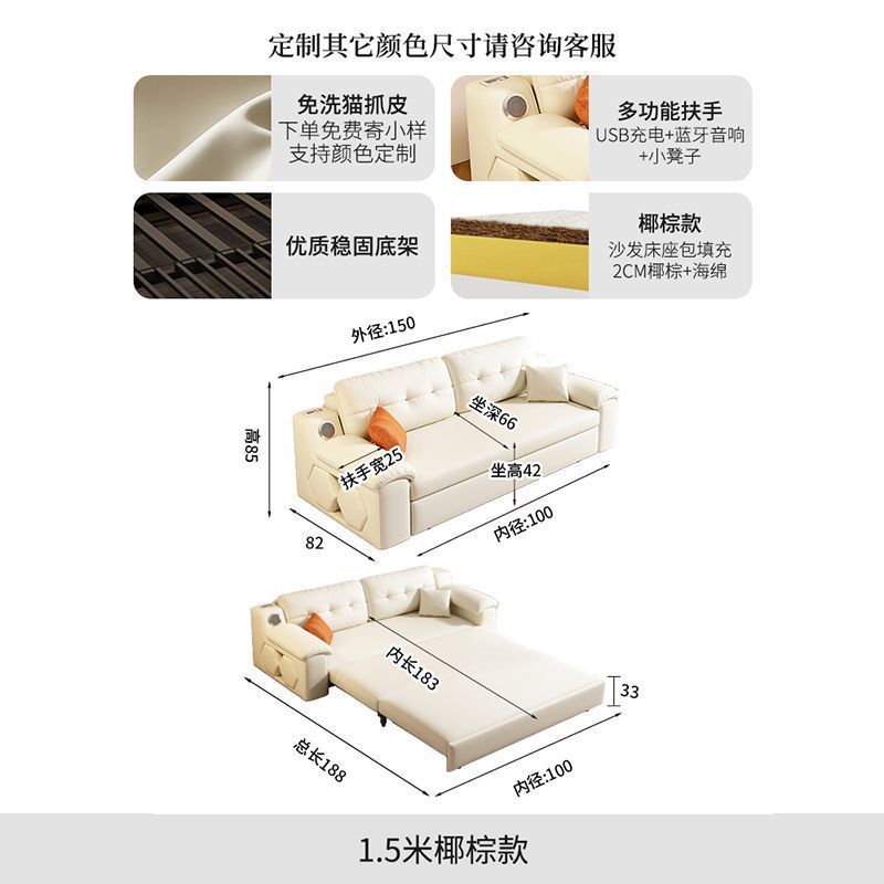 새로운 북유럽 다기능 소파 침대 이중 목적 거실 작은 아파트 침실 현대 간단한 스토리지 오디오 소파 침대스토어 가기