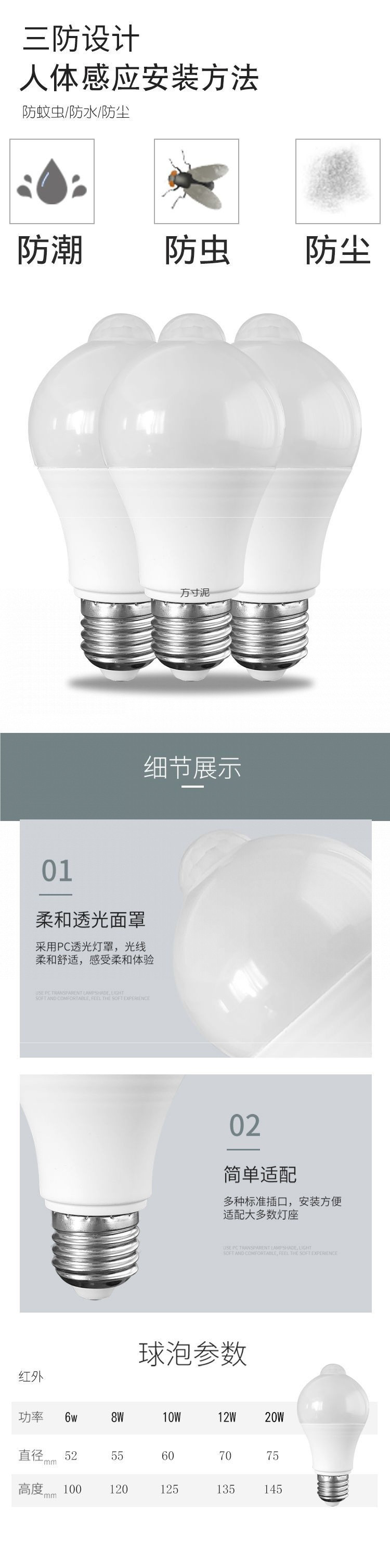 인체감지 전구, 따뜻한 색상의 LED 조명, 따뜻한 빛, 복도, 화장실 입구, 가정용 적외선 센서 조명, 스마트
