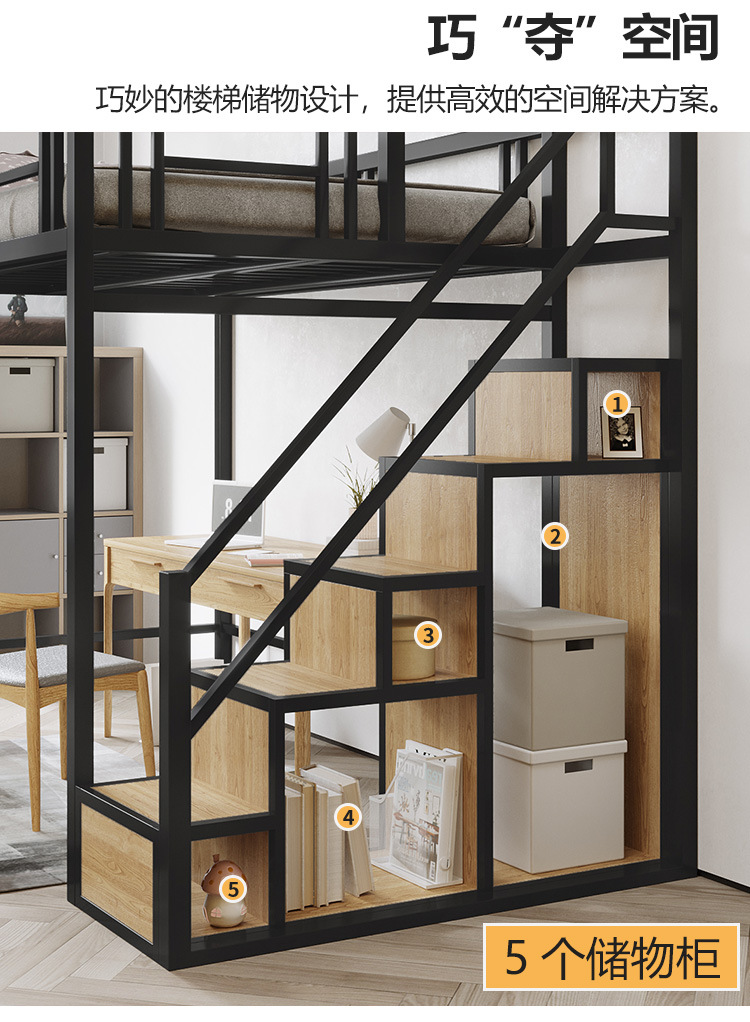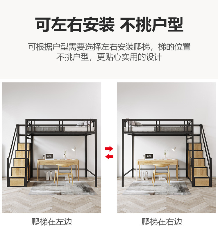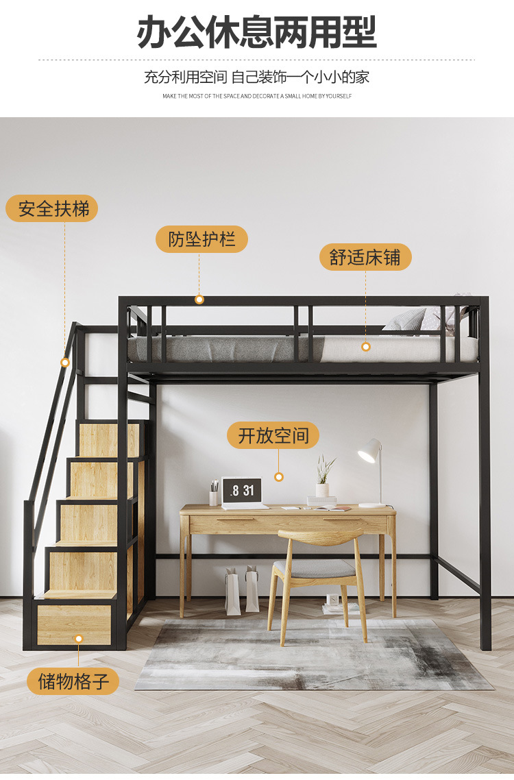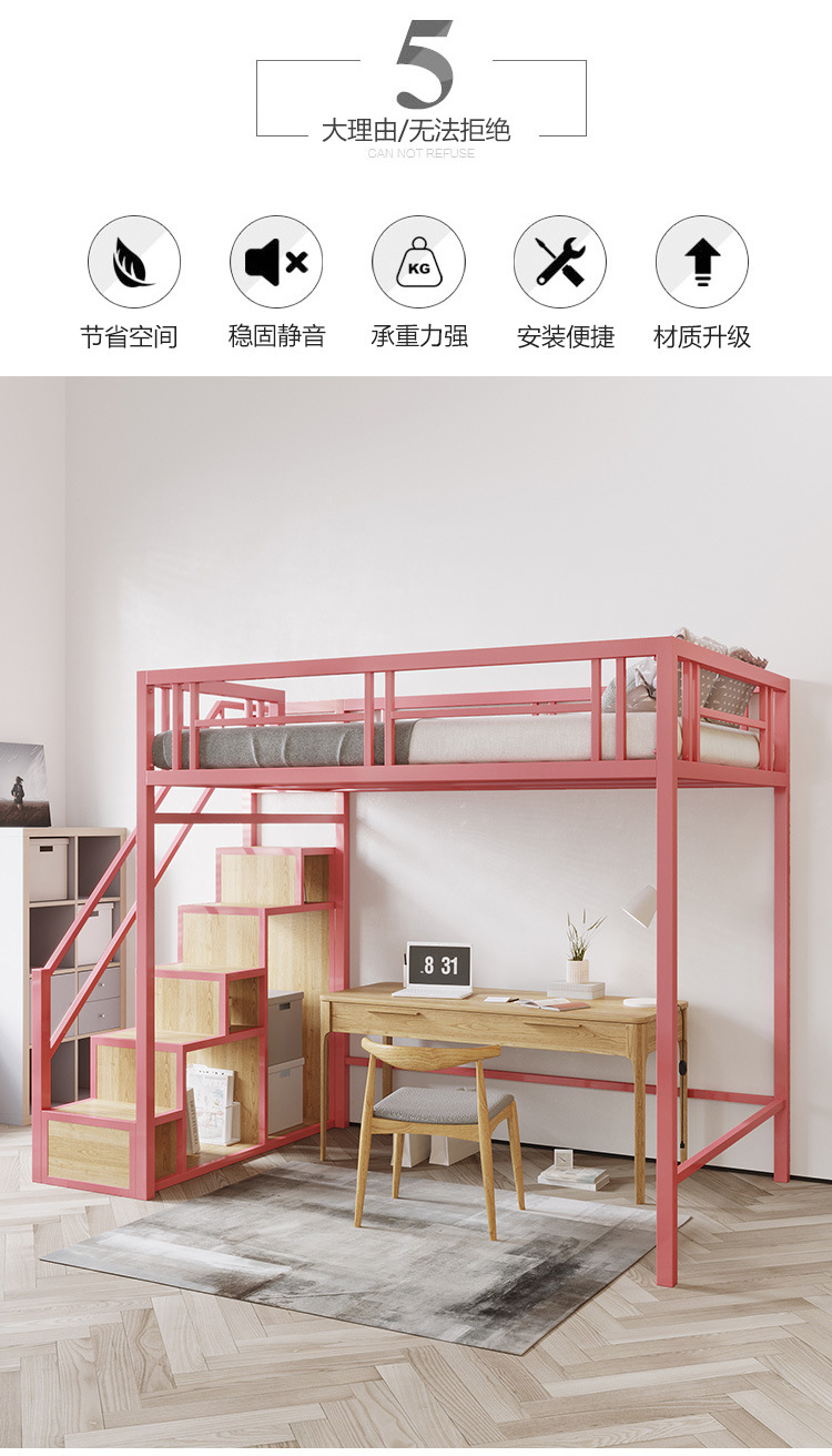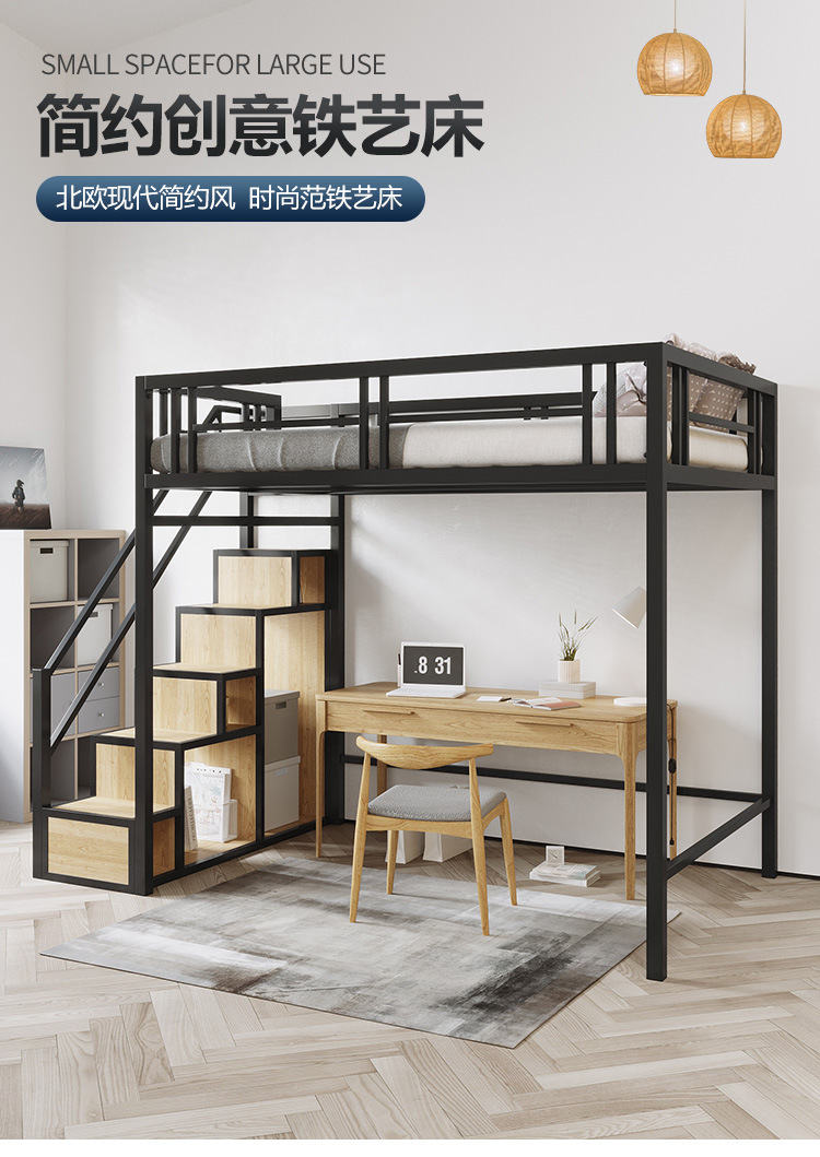 9U 철제 로프트 침대, 복층 2층 침대 시트, 상층 이층 소형 아파트, 공간 절약형 로프트 침대, 아파트 높낮이스토어 가기