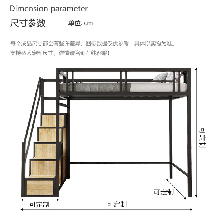 9U 철제 로프트 침대, 복층 2층 침대 시트, 상층 이층 소형 아파트, 공간 절약형 로프트 침대, 아파트 높낮이
