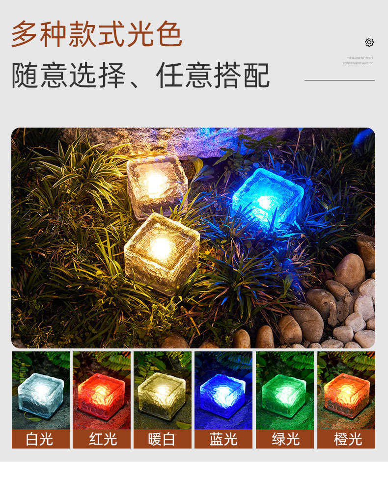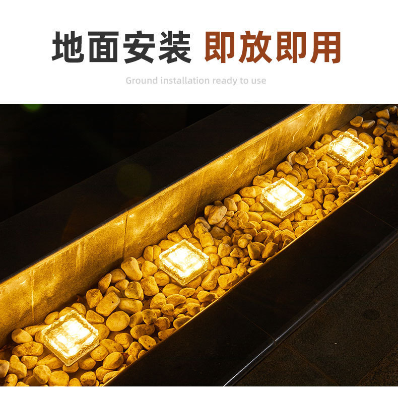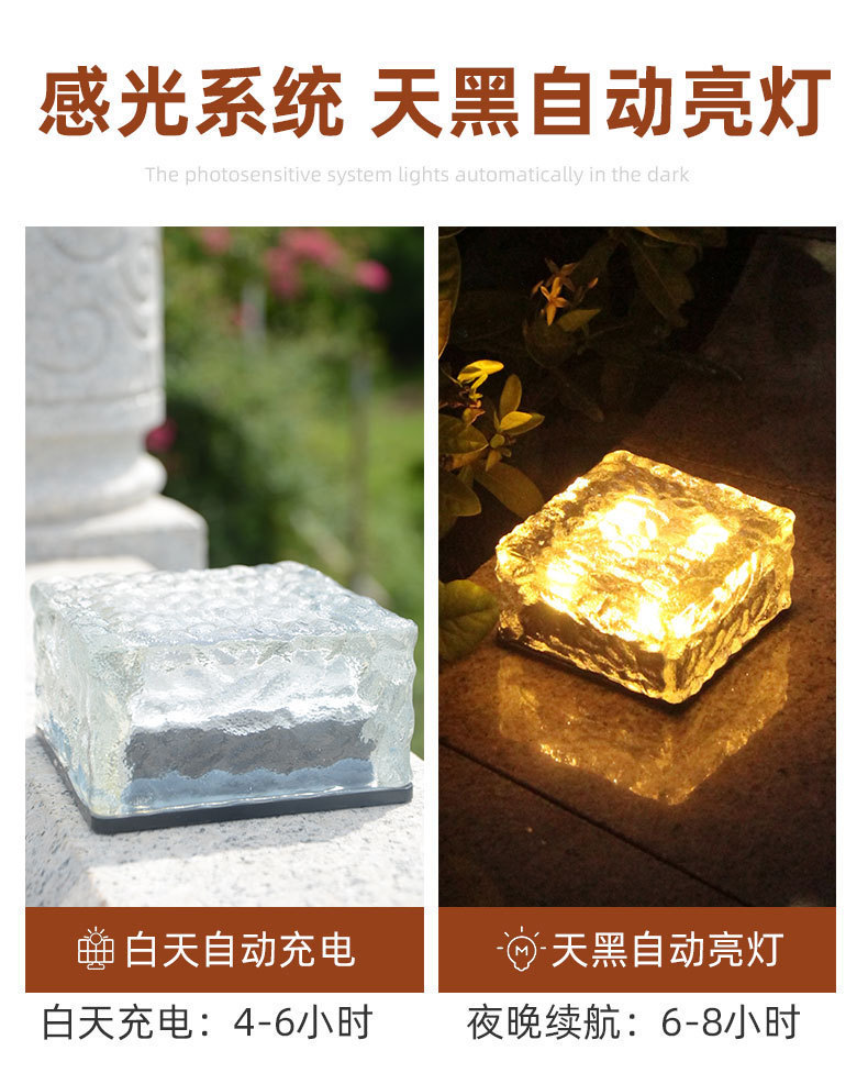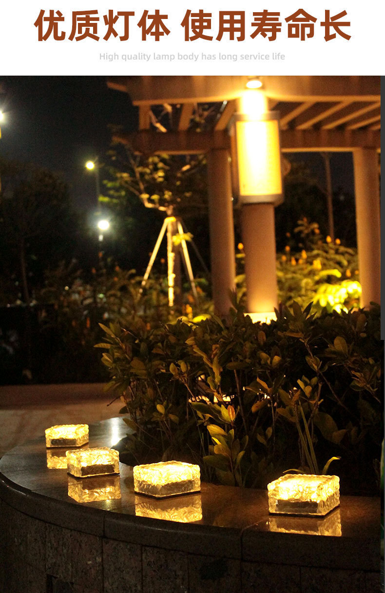 태양광 가정용 아이스 브릭 라이트 야외 바닥 타일 라이트 LED 사각형 정원 경관 유리 장식등 방수스토어 가기