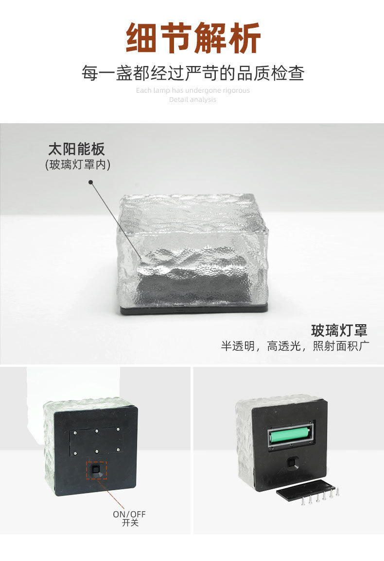 태양광 가정용 아이스 브릭 라이트 야외 바닥 타일 라이트 LED 사각형 정원 경관 유리 장식등 방수