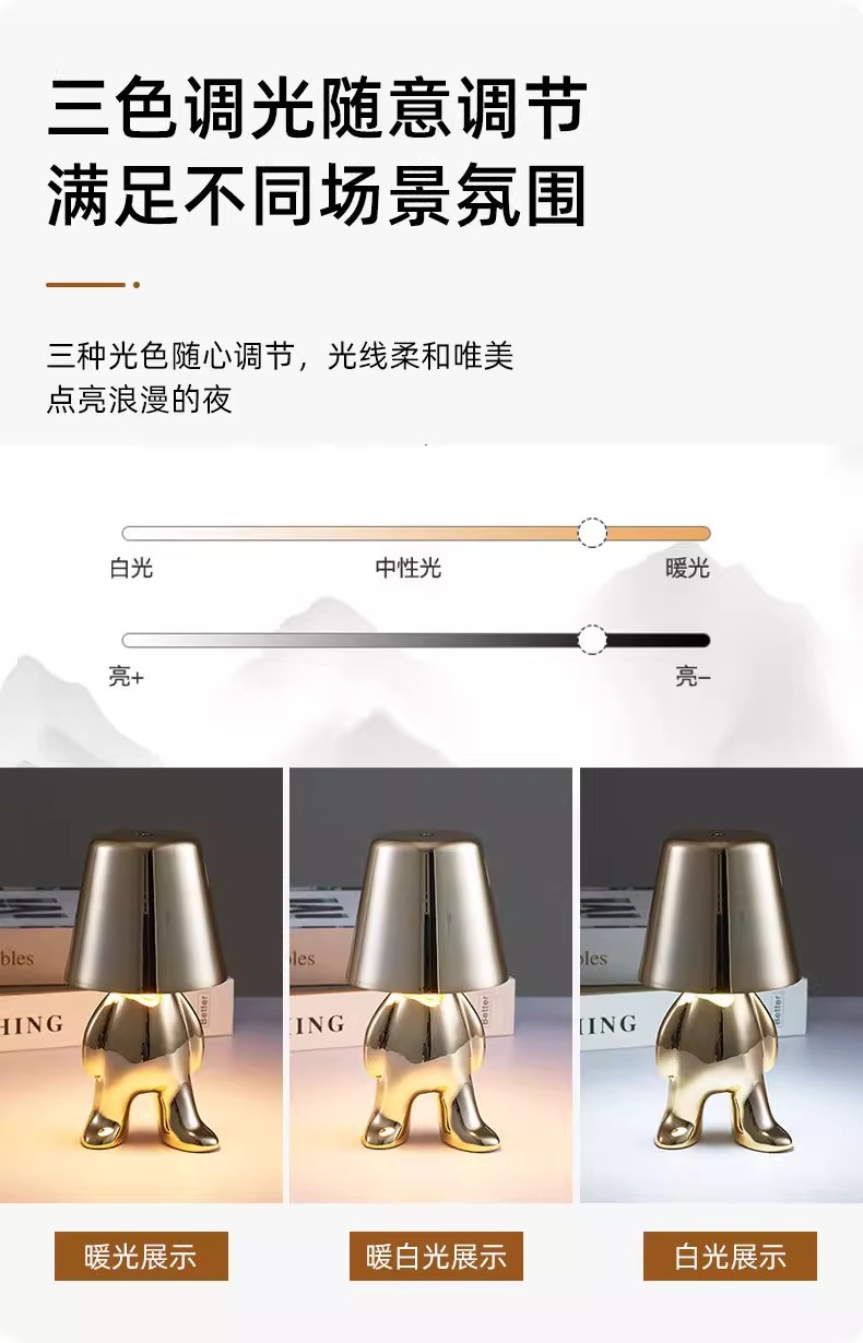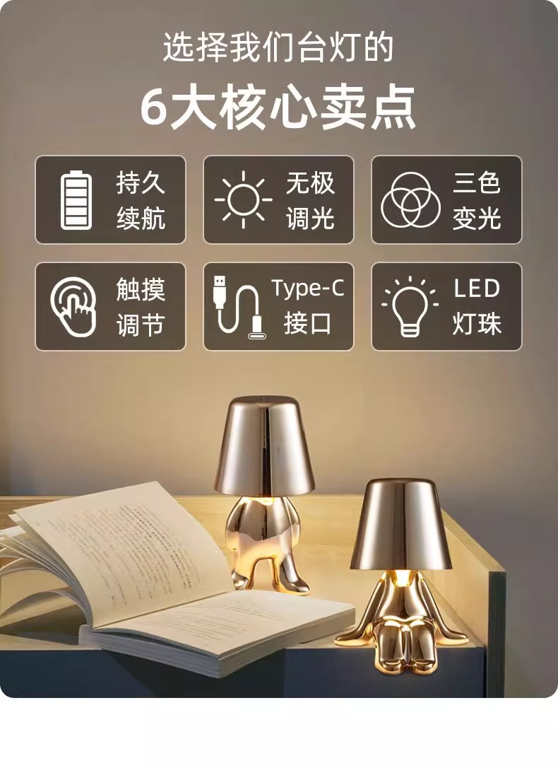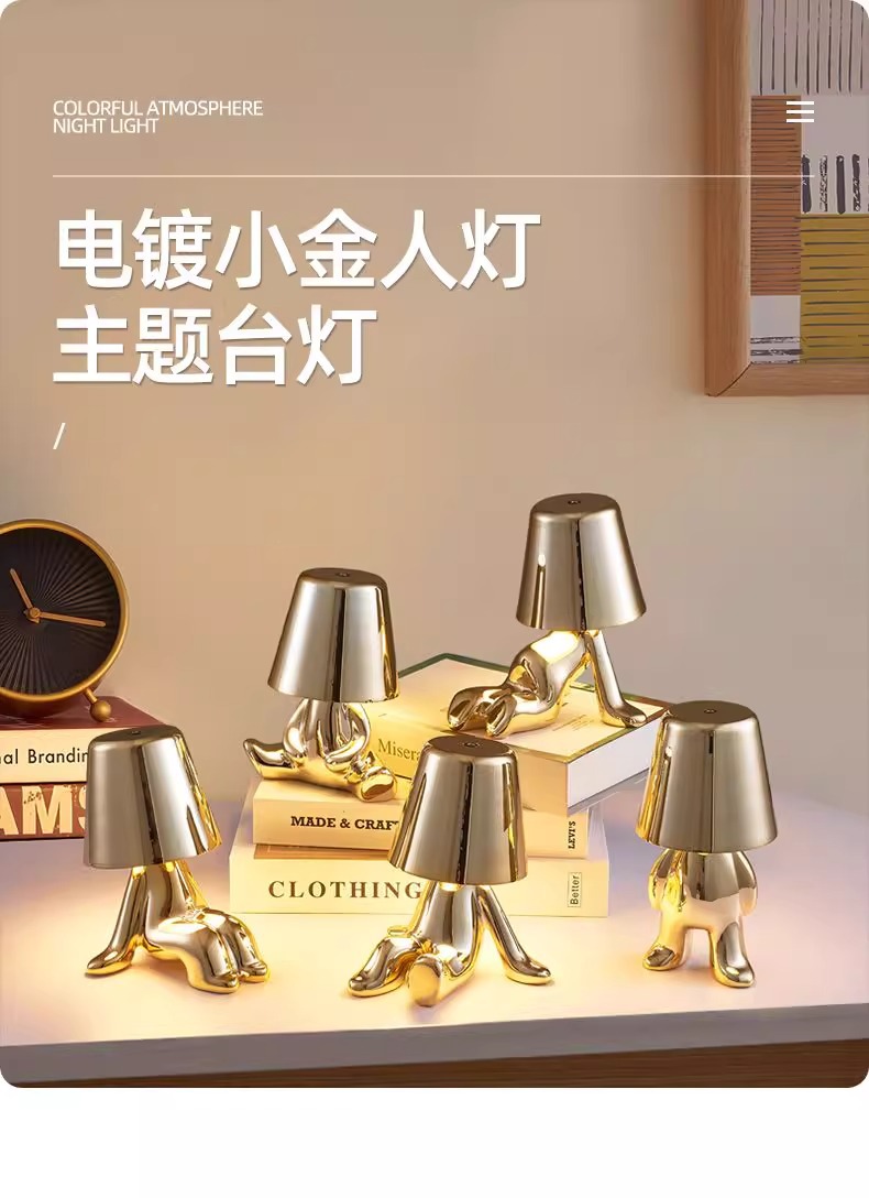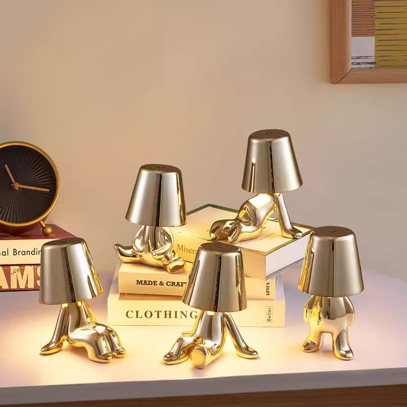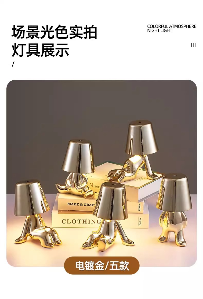 분위기 가벼운 럭셔리 사상가 작은 골드 남자 형제 충전식 장식 테이블 램프 레스토랑 침실 고급 카페 야간 조명