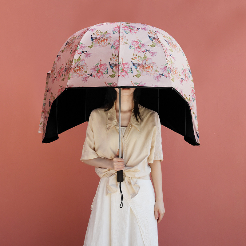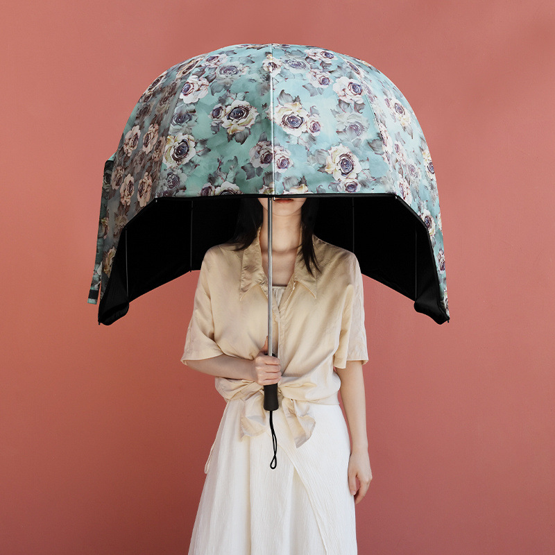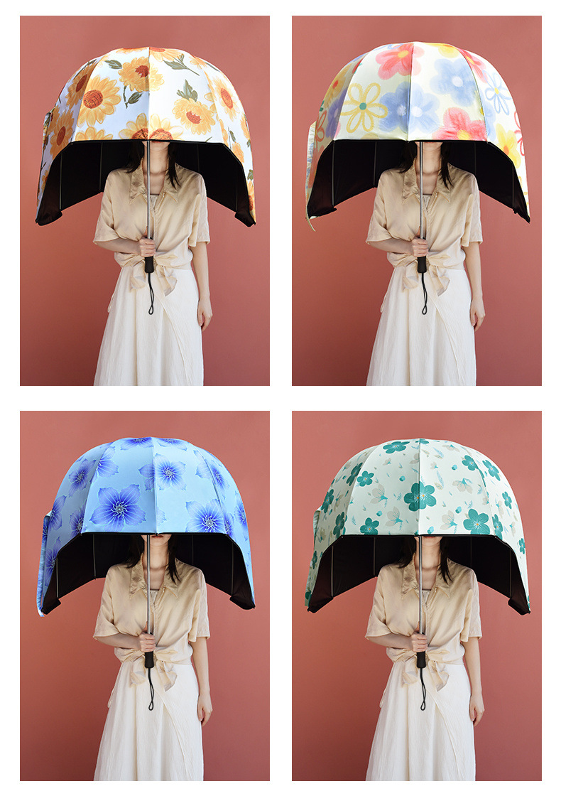 인터넷 연예인 헬멧 우산 긴 손잡이 우산 두꺼운 바람 방지 대형 2025 자외선 차단 우산 태양 우산