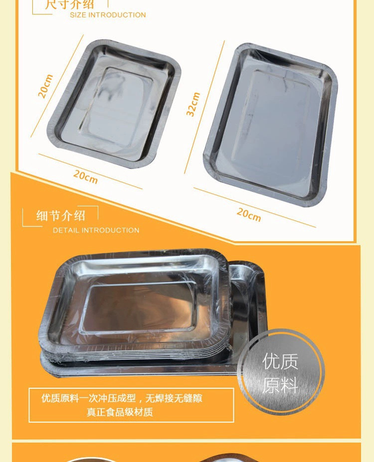 사각 접시 스테인레스 스틸 접시 직사각형 생선 구이 접시 바베큐 접시 상업용 가정용 두꺼운 저녁 식사 접시 접시 트레이스토어 가기