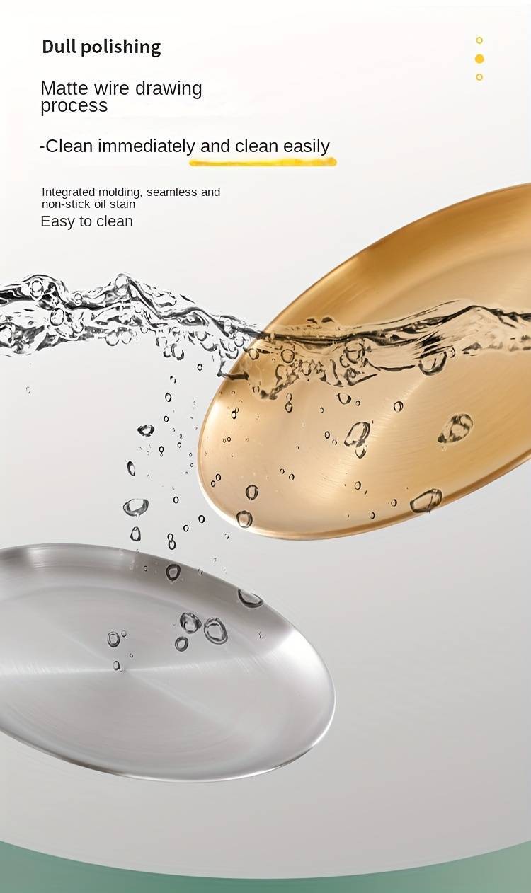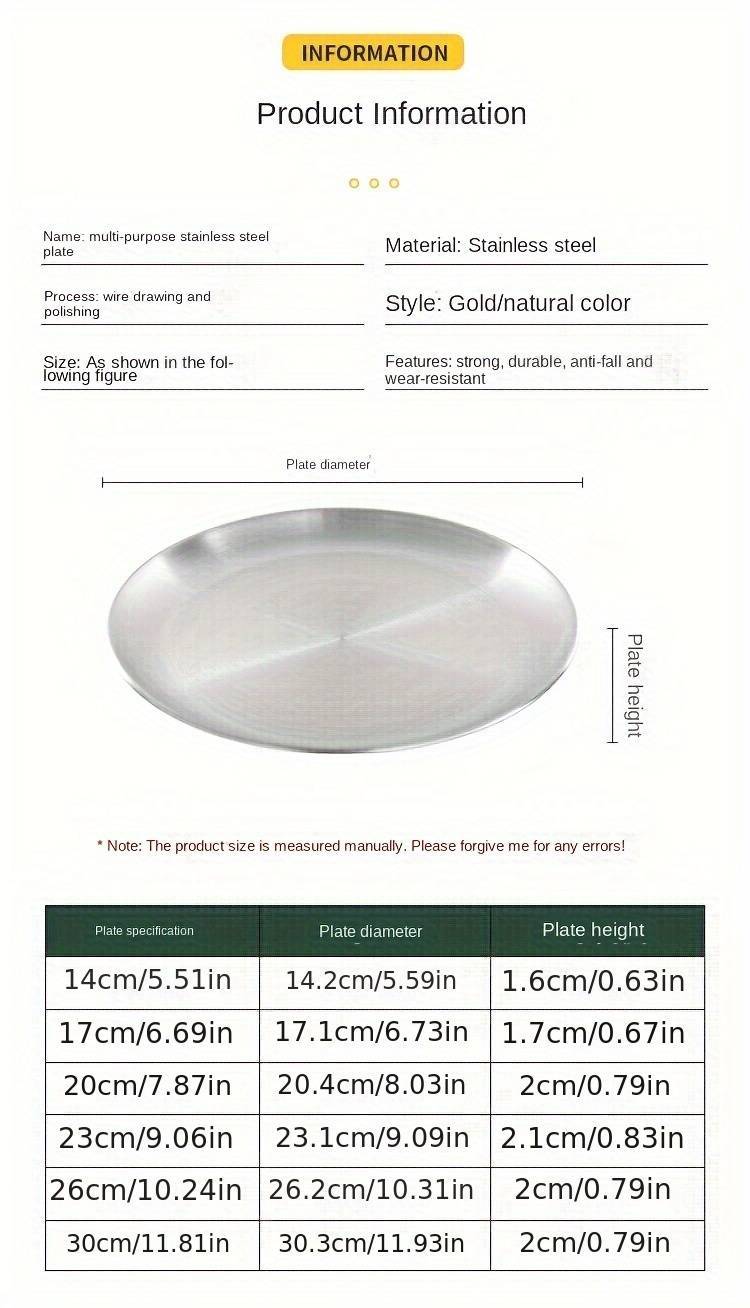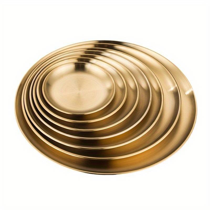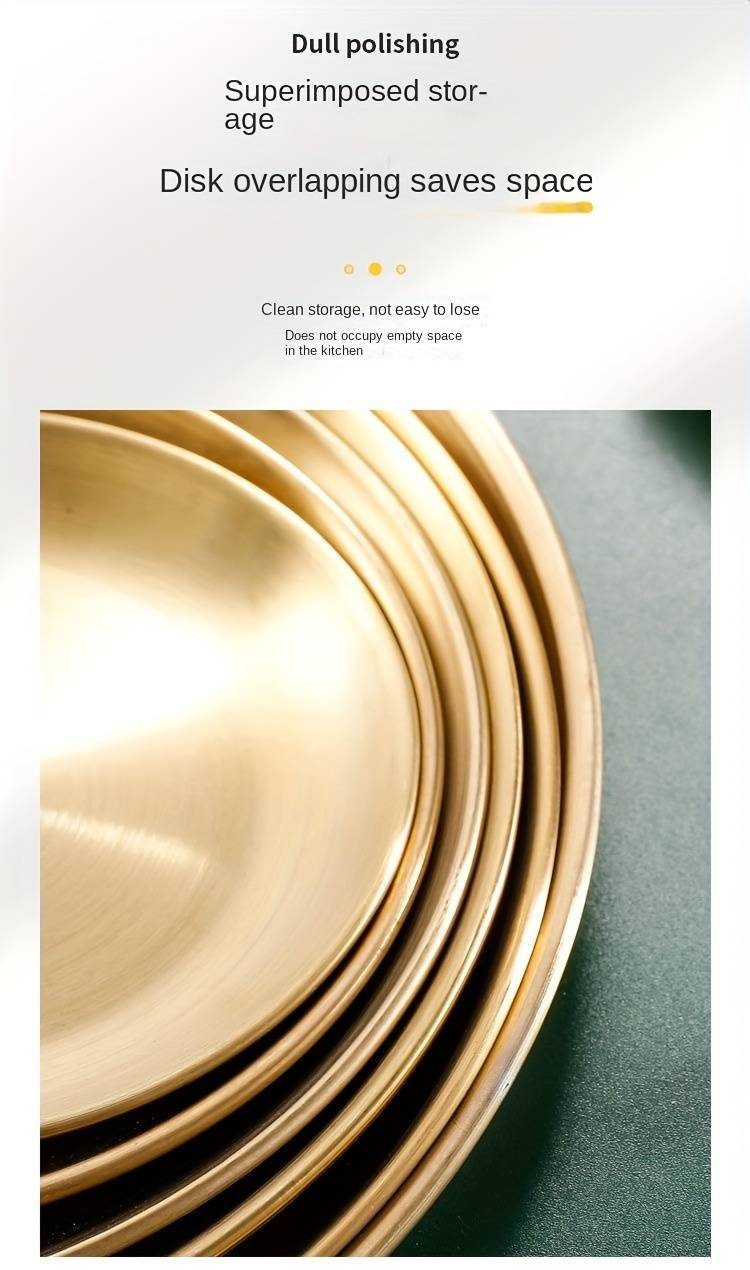 국경 간 한국 스테인레스 스틸 접시 황금 바베큐 두꺼운 과일 접시 원형 접시 가정용 얕은 접시 뼈 접시 트레이 베이킹 팬스토어 가기