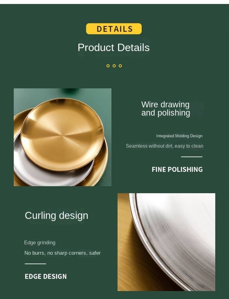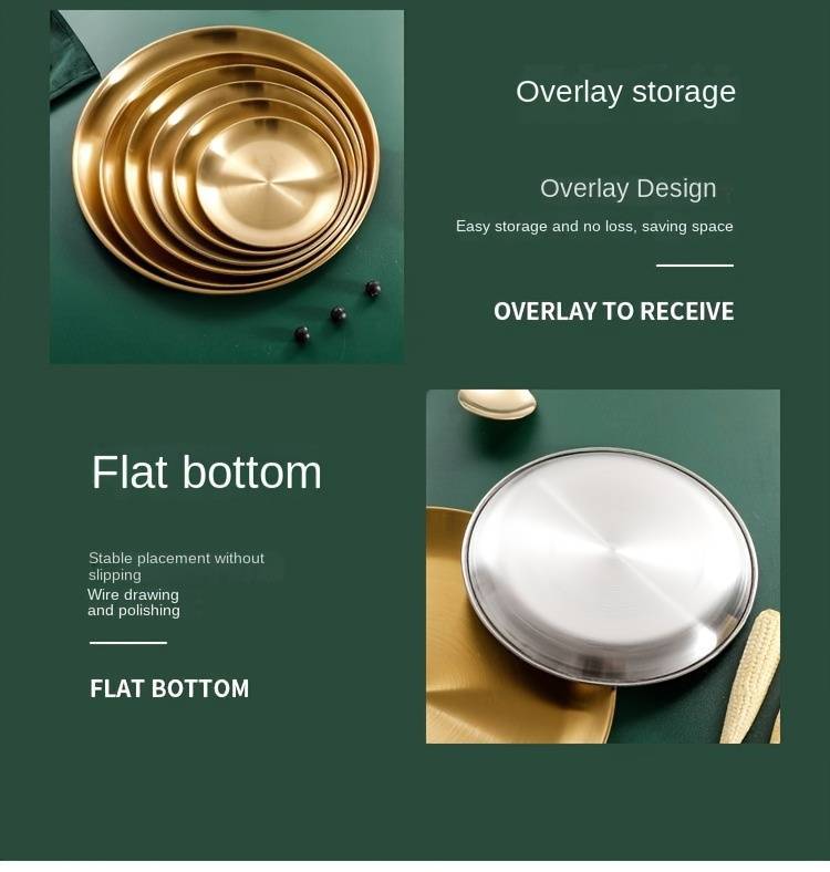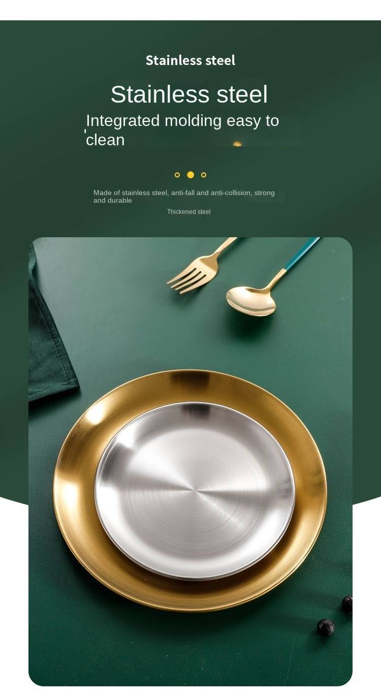 국경 간 한국 스테인레스 스틸 접시 황금 바베큐 두꺼운 과일 접시 원형 접시 가정용 얕은 접시 뼈 접시 트레이 베이킹 팬