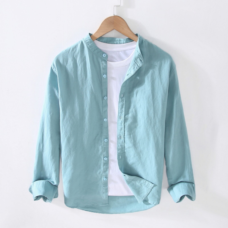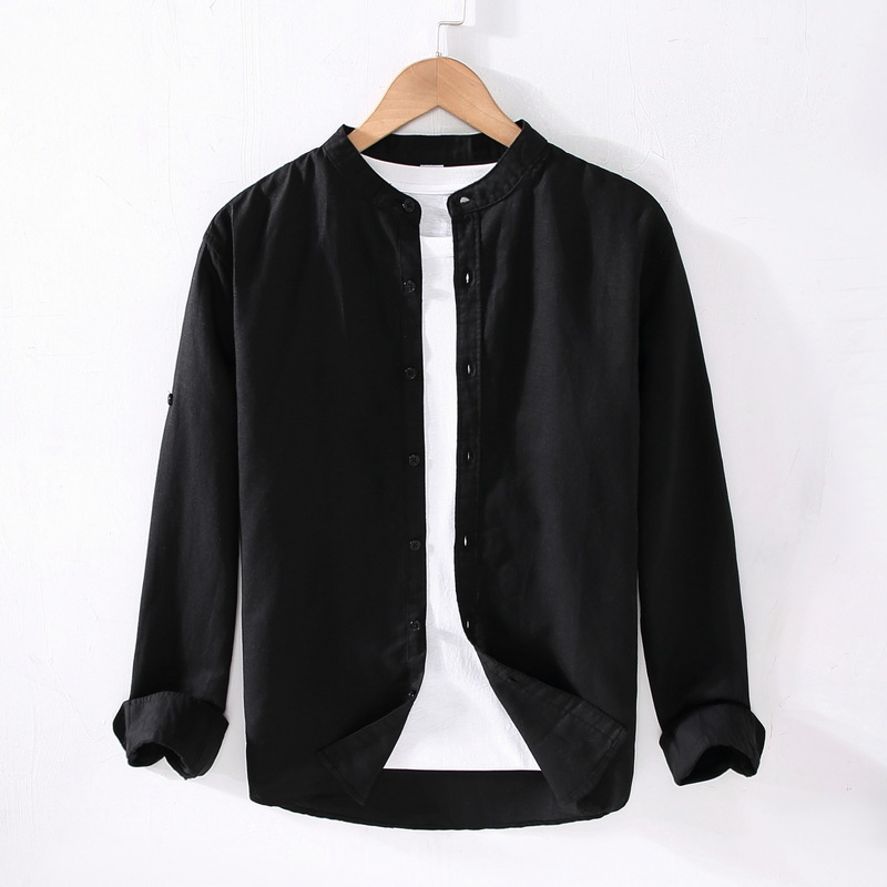 911 린넨 셔츠 남성 캐주얼 심플 긴팔 얇은 단색 봄 여름 중국 스탠드 칼라 통기성 코튼 린넨 셔츠스토어 가기