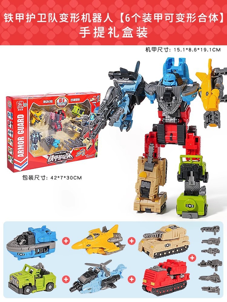 • 아이언 가드 변신 로봇 [6개의 갑옷이 변신하여 결합 가능] + 휴대용 선물 상자