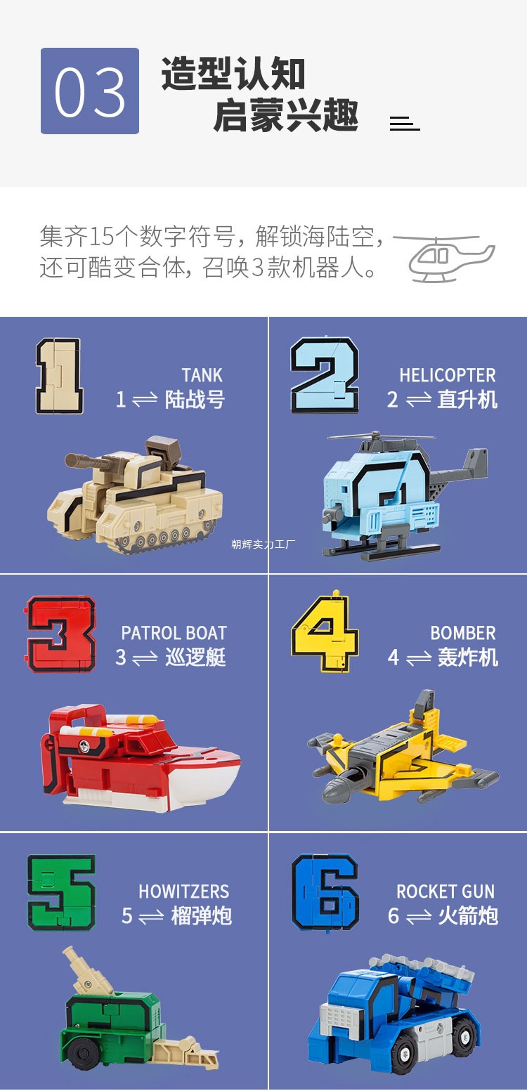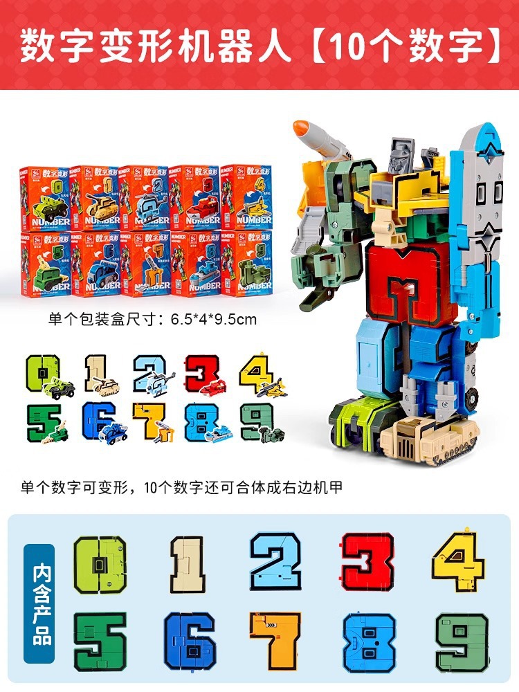3~6세 소년을 위한 어린이 교육용 디지털 변형 장난감 5개 조립 로봇 7개 빌딩 블록 어린이날 선물스토어 가기