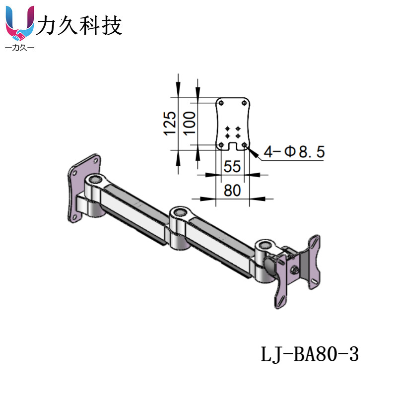 BA80 산업용 모니터 스탠드 강화된 내하중 알루미늄 합금 양극 처리 접이식 텔레스코픽 케이블 컴퓨터스토어 가기